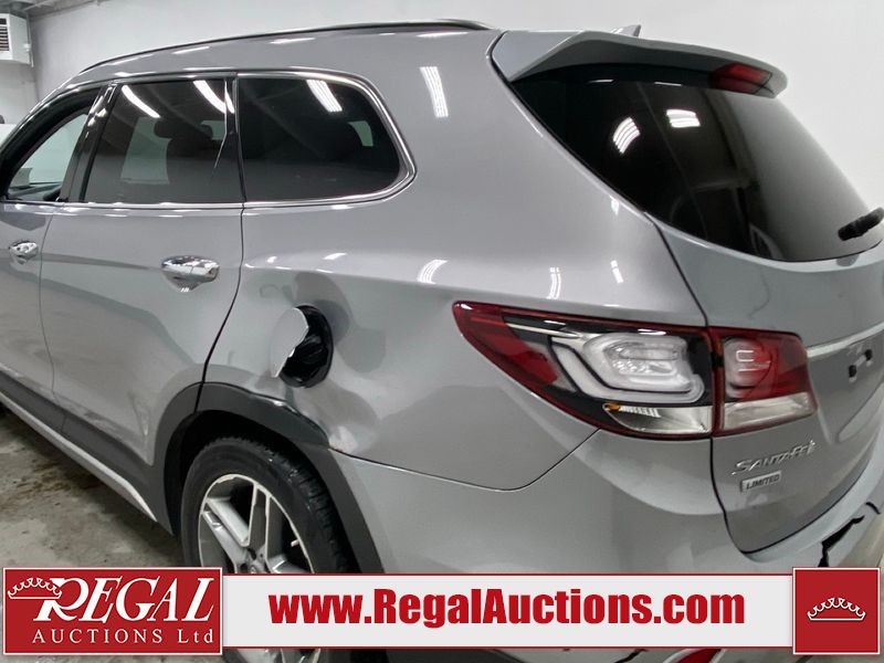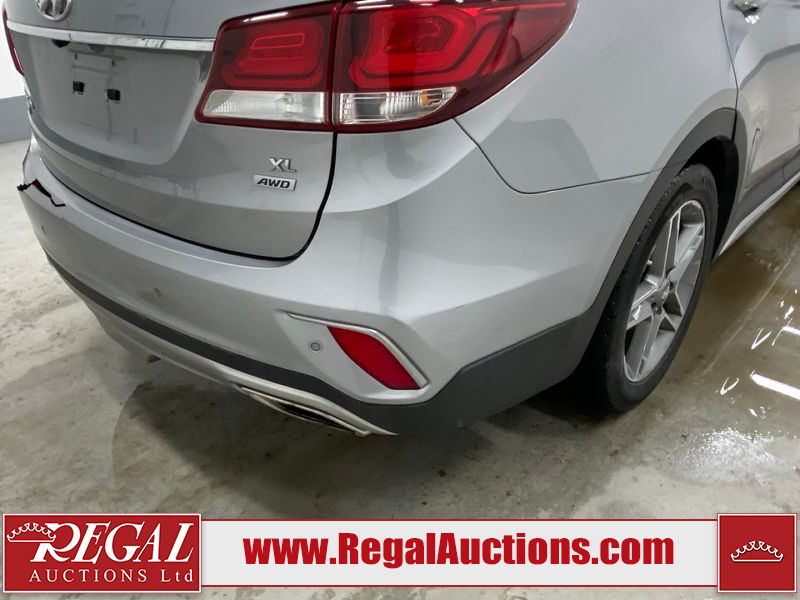 This 2018 HYUNDAI SANTE FE XL LIMITED 4D UTILITY AWD 3.3L is powered by a 6 cylinder gasoline engine and an automatic transmission. It is equipped with four wheel drive. The SUV has seats for 7 people. The SUV has low mileage for its age. LIMITED is a very popular trim level. The vehicle has high value options including a sunroof, leather upholstery, power seats, heated seats, navigation, a backup camera, and a power lift gate. The body looks to be in fair condition overall. There is very bad dent damage on the left rear fender. The rear bumper is cracked. There are slight chips on the front bumper and rear bumper. There are minimal scratches on the rear bumper. There are very minor scratches in many areas around the body. There are very minor chips in many areas around the body. The left tail light is broken. The interior looks to be in good condition overall. The carpet is dirty. The windshield is chipped. The tires are all worn. The gas cap is damaged.