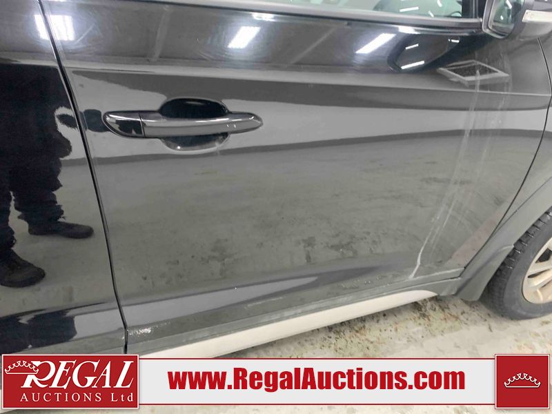This 2018 HYUNDAI TUCSON SE 4D UTILITY 4WD 2.0L is powered by a 4 cylinder gasoline engine and an automatic transmission. It is equipped with four wheel drive. The SUV has seats for 5 people. The SUV has low mileage for its age. The vehicle has high value options including a sunroof, leather upholstery, power seats, heated seats, and a backup camera. The body looks to be in fair condition overall. There are chips on the front bumper, hood, left front door, left rear door, right rear door, and right front door. There is slight paint peeling on the left rear door. There are minor scratches on the left rear fender. There are very minor scratches in many areas around the body. There are very minor chips in many areas around the body. There is very minor dent damage on the left rear door. The interior looks to be in good condition overall. The carpet is dirty. The windshield is chipped. All of the tires have lots of tread remaining.