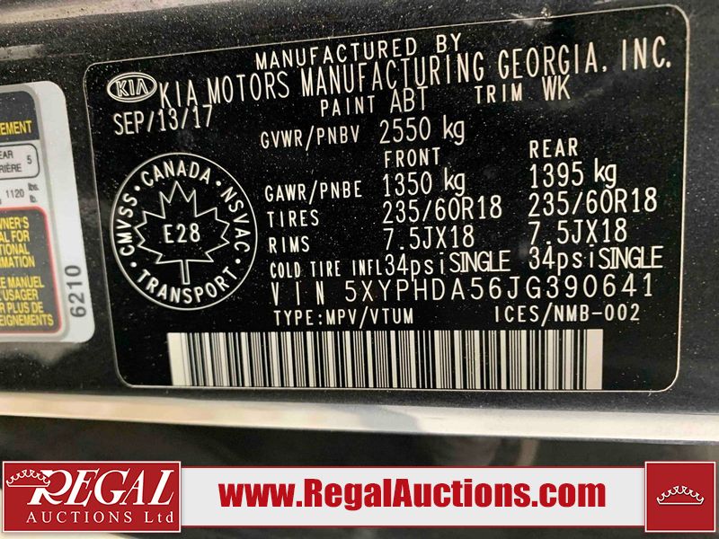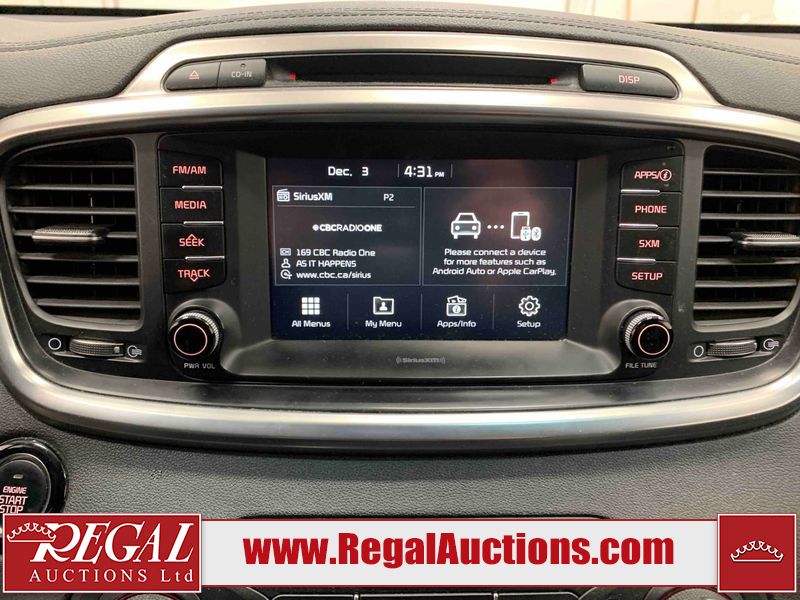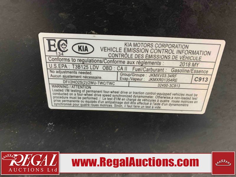 This 2018 KIA SORENTO EX 4D SPORT UTILITY is powered by a 3.3L V6 gasoline engine and an automatic transmission. It is equipped with all-wheel drive. The SUV has seats for 7 people. The SUV has high mileage for its age. The vehicle has high value options including a sunroof, leather upholstery, power seats, heated seats, navigation, a backup camera, and a power liftgate. The body looks to be in rough condition overall. There is substantial hail on the hood, roof, and right rear fender. There are chips on the front bumper. There is slight hail on the left rear fender, rear door, right rear door, right front door, and right front fender. There are very minor scratches in many areas around the body. There are very minor chips in many areas around the body. The interior looks to be in good condition overall. The driver seat is worn. The windshield looks to be in good condition. All of the tires have lots of tread remaining. This SUV is being sold by a private individual. The vehicle will be sold with the following declarations: Auctioneer Announcement "*SHIFT LOCK RELEASE NEEDS TO BE BYPASSED USING A SCREWDRIVER * " and Hail Damage (See Footnote 1). Footnotes: 1) This vehicle shows signs of damage from a hail storm. Hail damage is not always clearly visible in photographs. Regal Auctions Ltd. makes no guarantee or warranty, either express or implied, with respect to the data provided in this report. The information has been provided from the consignor and from sources generally believed to be reliable, however the accuracy of this information cannot be guaranteed by Regal Auctions.
