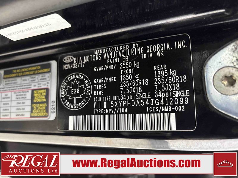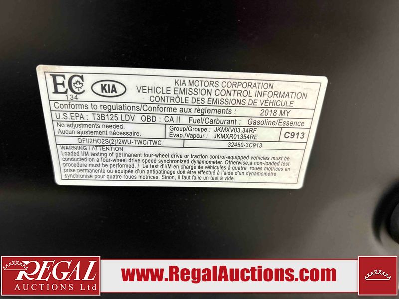 This 2018 KIA SORENTO EX 4D SPORT UTILITY AWD is powered by a 3.3 liter 6-cylinder gasoline engine and an automatic transmission. It is equipped with all-wheel drive. The SUV has seats for 7 people. The SUV has low mileage for its age. The vehicle has high-value options, including a sunroof, leather upholstery, power seats, heated seats, and a backup camera. The Check Engine light is on. The vehicle has some mechanical problems. **CHECK ENGINE LIGHT IS FLASHING**RUNS ROUGH** (See Footnote 1) The body looks to be in good condition overall. There are scratches on the left front door and left rear door. There are chips in many areas around the body. There are scratches in many areas around the body. The interior looks to be in good condition overall. The windshield is cracked. The front tires are both worn. The rear tires both have lots of tread remaining. This SUV is being sold by an automotive broker. The vehicle will be sold with the following declarations: Out of Province - BC (See Footnote 2). Footnotes: 1) We've identified some mechanical problems with the vehicle. However, the vehicle has not undergone a mechanical inspection and our findings are not to be considered a complete evaluation of the vehicle's mechanical condition. Review our Buyer Protection Policy to see how Regal Auctions protects you from undisclosed mechanical problems. 2) The vehicle's last registered jurisdiction is British Columbia. The purchaser must have the vehicle undergo and pass an Out of Province inspection before it can be registered in Alberta. Regal Auctions Ltd. makes no guarantee or warranty, either express or implied, with respect to the data provided in this report. The information has been provided from the consignor and from sources generally believed to be reliable, however the accuracy of this information cannot be guaranteed by Regal Auctions.