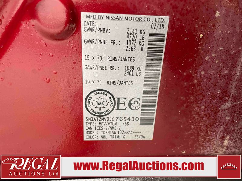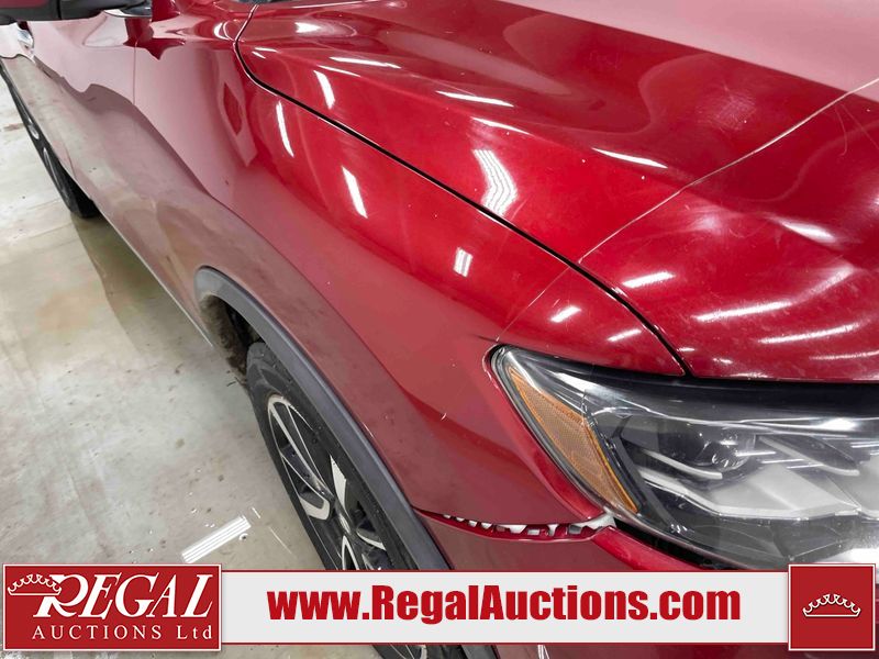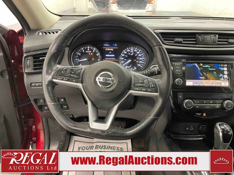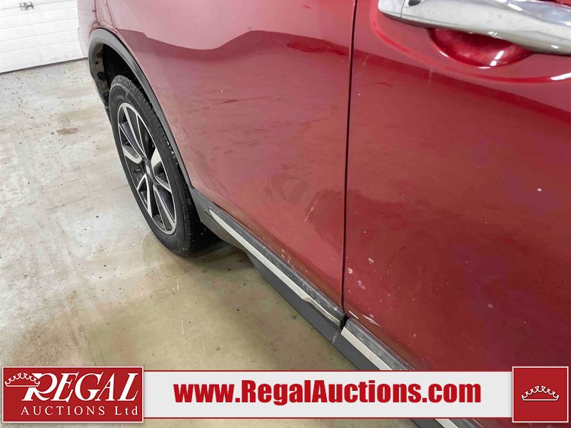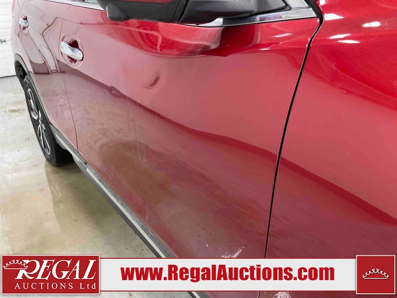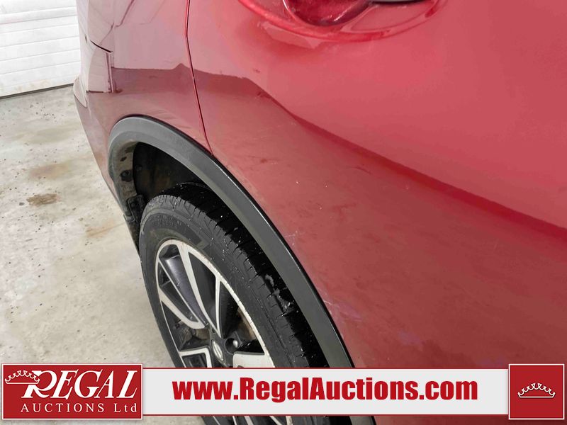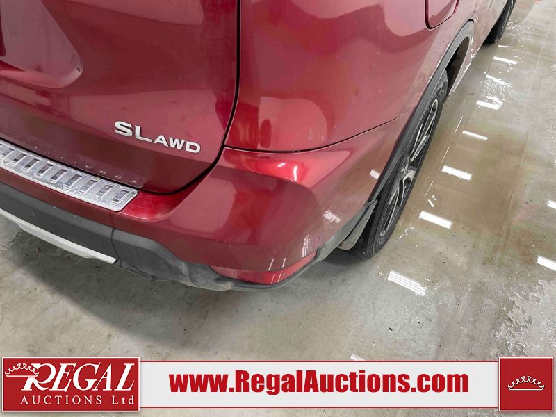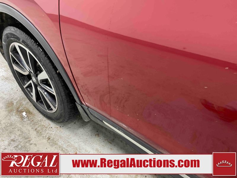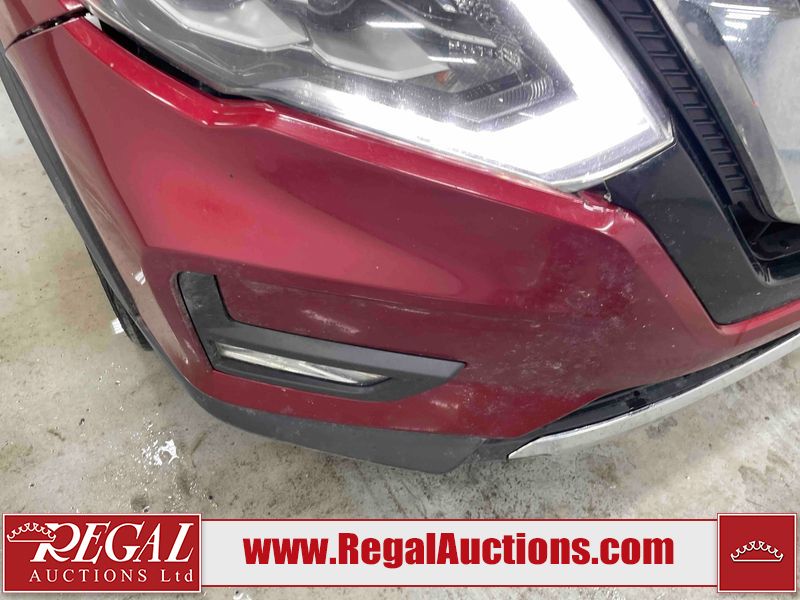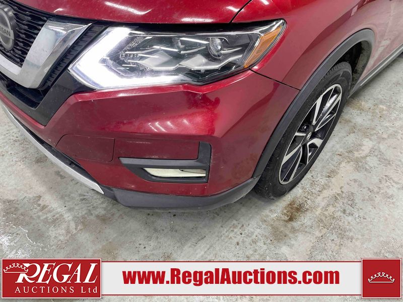 This 2018 NISSAN ROGUE SL 4D UTILITY AWD 2.5L is powered by a 4 cylinder gasoline engine and an automatic transmission. It is equipped with four wheel drive. The SUV has seats for 5 people. The mileage is average considering the SUV's age. The vehicle has high value options including a sunroof, leather upholstery, power seats, heated seats, navigation, a backup camera, and a power lift gate. The Tire Pressure, Forward collision, and Lane Departure lights are on. The body looks to be in rough condition overall. The front bumper is cracked. The front bumper is misaligned. There is some dent damage on the left front door, left rear fender, and right front door. There are incidental chips on the front bumper and grille. There are slight scratches on the front bumper, hood, roof, left rear fender, and right front door. There is minor rust on the roof. There is incidental dent damage on the left rear door and right rear fender. There are very minor chips in many areas around the body. There are very minor scratches in many areas around the body. The fog lights are broken. The right rear tail light is broken. The interior looks to be in fair condition overall. The driver's seat, passenger seat, and rear seats are worn. The carpet is dirty. The roofliner is dirty. The windshield is damaged. All of the tires have lots of tread remaining.