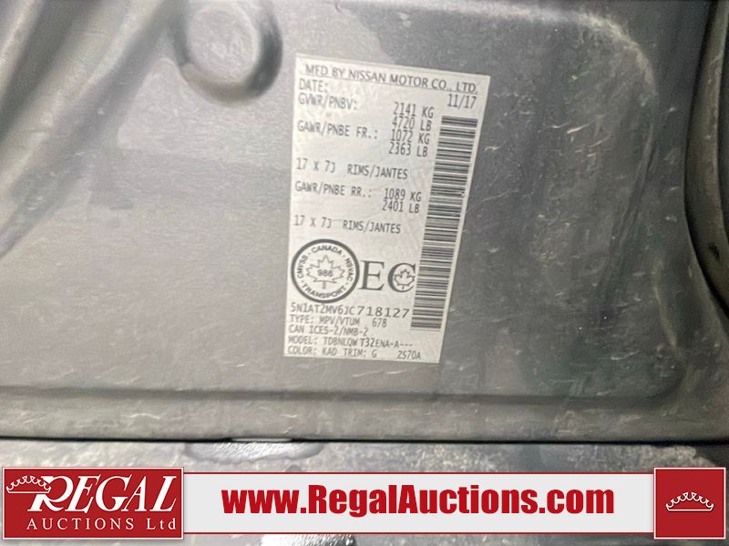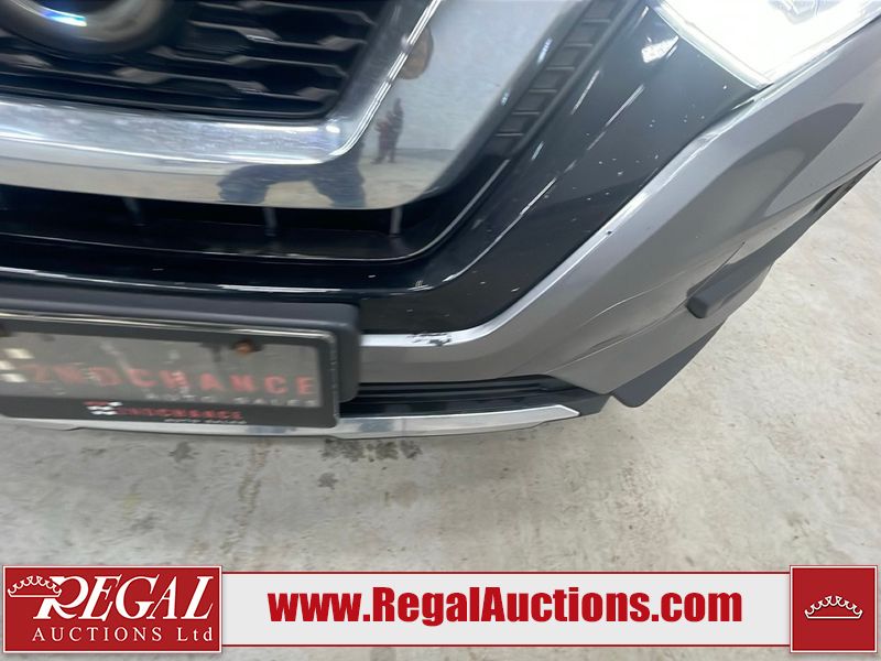 This 2018 NISSAN ROGUE SV 4D UTILITY AWD 2.5L is powered by a 4 cylinder gasoline engine and a automatic transmission. It is equipped with four wheel drive. The SUV has seats for 5 people. The vehicle has high value options including power windows, power locks, a radio, and air conditioning. The vehicle has some mechanical problems. The suspension is noisy. The body looks to be in fair condition overall. There is misaligned damage to the front bumper. There is conspicuous paint peeling on the front bumper. There are minimal chips on the front bumper, grille, hood, roof, left front fender, and rear bumper. There are scratches on the rear bumper. There are very minor scratches in many areas around the body. There are very minor chips in many areas around the body. The interior looks to be in fair condition overall. The doors are torn. The dashboard and doors are dirty. The carpet is dirty. There is a foul odour in the interior. The windshield is cracked. All of the tires have lots of tread remaining.