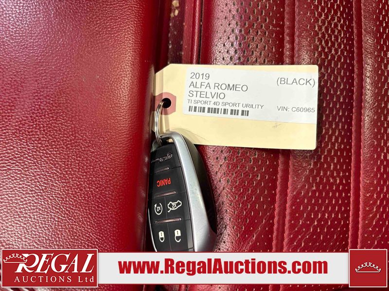 This 2019 ALFA ROMEO STELVIO TI SPORT 4D SPORT UTILITY is powered by a turbocharged 2.0 liter 4-cylinder gasoline engine and an automatic transmission. It is equipped with all-wheel drive. The SUV has seats for 5 people. The SUV has low mileage for its age. The vehicle has high-value options including leather upholstery and power seats. The body looks to be in good condition overall. The front bumper has parts missing. There are chips in many areas around the body. There are scratches in many areas around the body. There is dent damage on the right rear fender. The interior looks to be in good condition overall. The windshield is damaged. All of the tires have lots of tread remaining. This SUV is being sold by an automotive broker. Regal Auctions Ltd. makes no guarantee or warranty, either express or implied, with respect to the data provided in this report. The information has been provided from the consignor and from sources generally believed to be reliable, however the accuracy of this information cannot be guaranteed by Regal Auctions.
