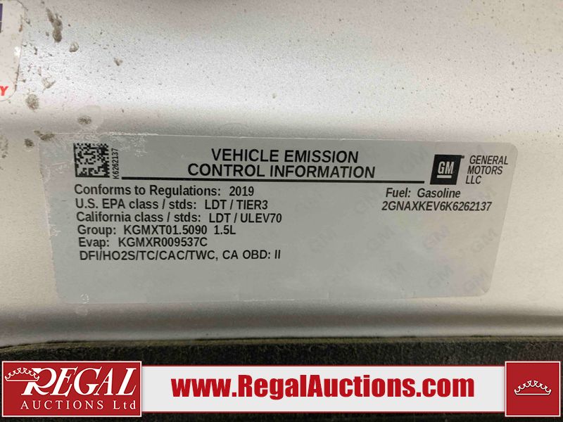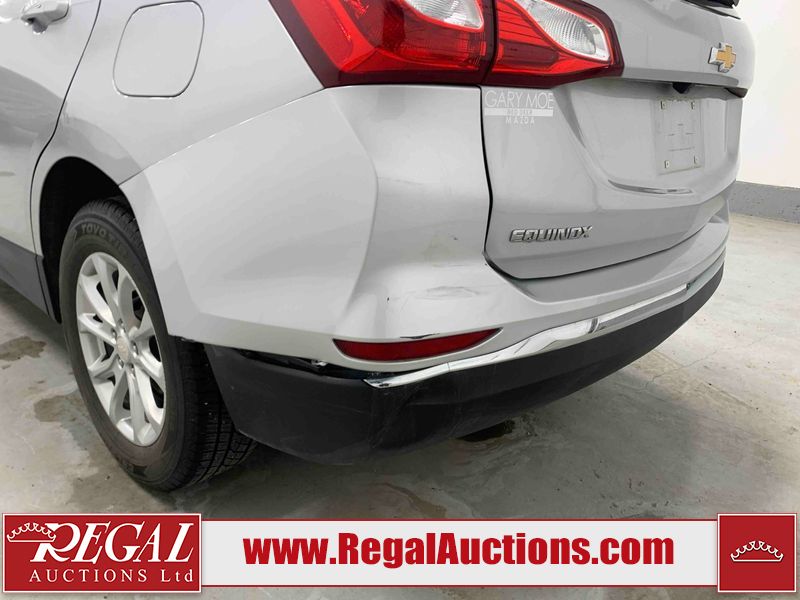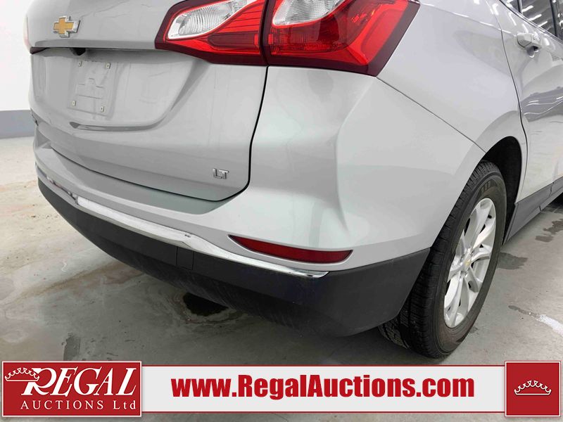 This 2019 CHEVROLET EQUINOX LT 4D UTILITY FWD 1.5L is powered by a turbocharged 4 cylinder gasoline engine and an automatic transmission. It is a two wheel drive model. The SUV has seats for 5 people. The SUV has low mileage for its age. The vehicle has high value options including power seats, heated seats, and a backup camera. The body looks to be in fair condition overall. There is extensive dent damage on the rear bumper. There are chips on the front bumper, hood, roof, left rear door, and left rear fender. The rear bumper is misaligned. There is incidental dent damage on the right front door. There are very minor scratches in many areas around the body. There are very minor chips in many areas around the body. There is very minor dent damage in a few areas around the body. The interior looks to be in fair condition overall. The passenger seat and rear seats are stained. The carpet is dirty. The windshield is chipped. All of the tires have lots of tread remaining.