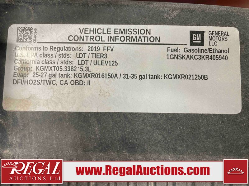 This 2019 CHEVROLET TAHOE LS 4D UTILITY 4WD 5.3L is powered by an 8 cylinder gasoline engine and an automatic transmission. It is equipped with four wheel drive. The SUV has seats for 8 people. The SUV has high mileage for its age. The vehicle has high value options including power seats and a backup camera. The body looks to be in good condition overall. There is minimal dent damage on the left front door. There are minor scratches on the left rear door. There are very minor chips in many areas around the body. There are very minor scratches in many areas around the body. The interior looks to be in good condition overall. There are pronounced cigarette burns on the driver's seat. The windshield looks to be in good condition. All of the tires have lots of tread remaining.