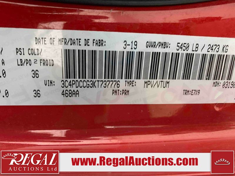 This 2019 DODGE JOURNEY SXT 4D UTILITY is powered by a 3.6L V6 gasoline engine and an automatic transmission. It is a two-wheel drive model. The SUV has seats for 7 people. The SUV has high mileage for its age. The vehicle has high-value options including heated seats and a backup camera. The Tire Pressure light is on. The body looks to be in fair condition overall. There are minor chips on the front bumper, hood, left front fender, left rear door, right rear door, and right front fender. There are minor scratches on the front bumper, hood, left front door, left rear door, left rear fender, rear bumper, right rear door, and right front door. There are very minor scratches on the right rear fender. The interior looks to be in good condition overall. The windshield is cracked. Both front power windows are inoperable. Both rear tires and the passenger side front tire are worn. The driver's side front tire has lots of tread remaining. This SUV is being sold by an automotive broker. The vehicle will be sold with the following declarations: Out of Province - BC (See Footnote 1). Footnotes: 1) The vehicle's last registered jurisdiction is British Columbia. The purchaser must have the vehicle undergo and pass an Out of Province inspection before it can be registered in Alberta. Regal Auctions Ltd. makes no guarantee or warranty, either express or implied, with respect to the data provided in this report. The information has been provided from the consignor and from sources generally believed to be reliable, however the accuracy of this information cannot be guaranteed by Regal Auctions.