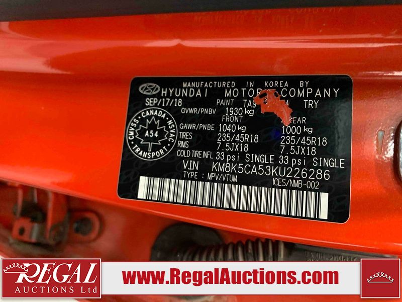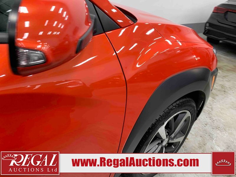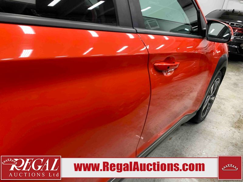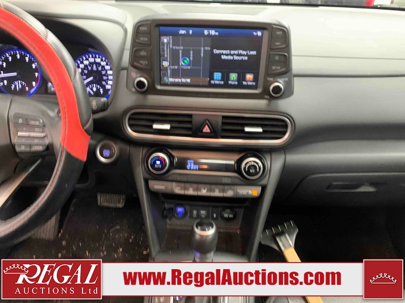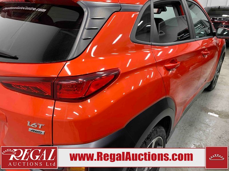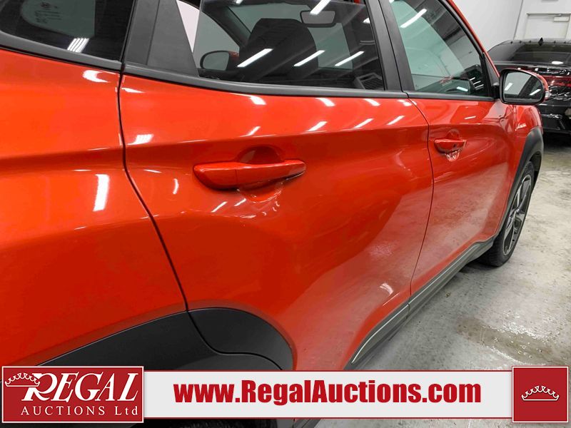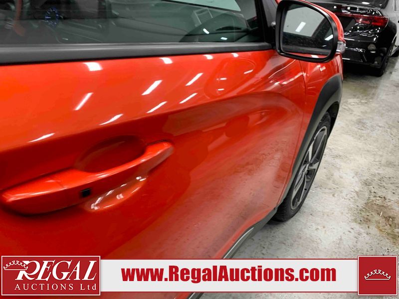 This 2019 HYUNDAI KONA ULTIMATE 4D UTILITY 4WD 1.6L is powered by a turbocharged 4 cylinder gasoline engine and an automatic transmission. It is equipped with four wheel drive. The SUV has seats for 5 people. The SUV has low mileage for its age. The vehicle has high value options including a sunroof, leather upholstery, power seats, heated seats, navigation, and a backup camera. The body looks to be in good condition overall. There are incidental chips on the front bumper, hood, left front door, and right rear door. There are very minor scratches in many areas around the body. There are very minor chips in many areas around the body. The interior looks to be in good condition overall. The carpet is dirty. The windshield is cracked. All of the tires have lots of tread remaining.