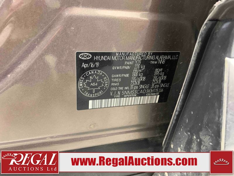 This 2019 HYUNDAI SANTA FE PREFERRED 4D UTILITY 4WD is powered by a 4 cylinder gasoline engine and an automatic transmission. It is equipped with four wheel drive. The SUV has seats for 5 people. The SUV has high mileage for its age. The vehicle has high value options including power seats, heated seats, and a backup camera. The Check Engine light is on. The vehicle has some mechanical problems. The engine runs rough. This unit has a significant lag on cold start. The body looks to be in rough condition overall. The hood, roof, left front fender, and right front fender have been repainted poorly. There is pronounced chrome peeling on the grille. There are chips on the front bumper, hood, roof, left front fender, left front door, left rear door, left rear fender, rear bumper, and right rear fender. There is minor paint peeling on the front bumper and hood. There are scratches on the left rear door. There are very minor scratches in many areas around the body. There are very minor chips in many areas around the body. There is very minor dent damage on the hood. The interior looks to be in fair condition overall. The rear seats are dirty. The carpet is dirty. The windshield is cracked. All of the tires are nearly bald and should be replaced.