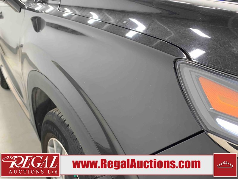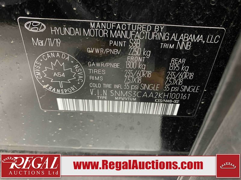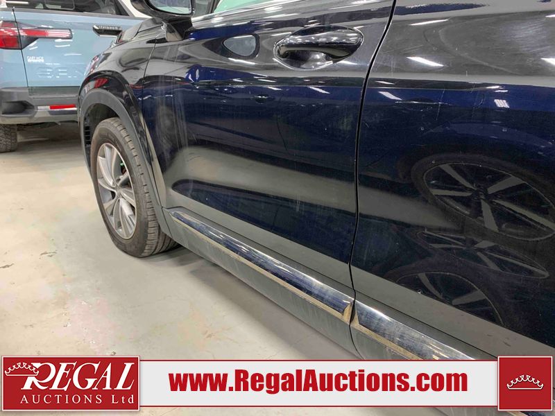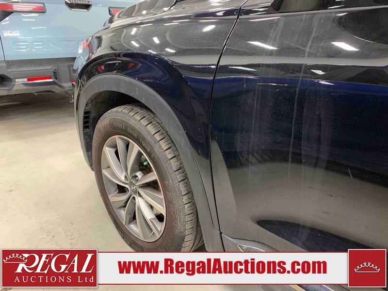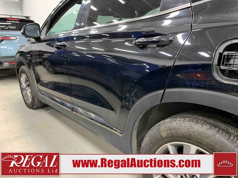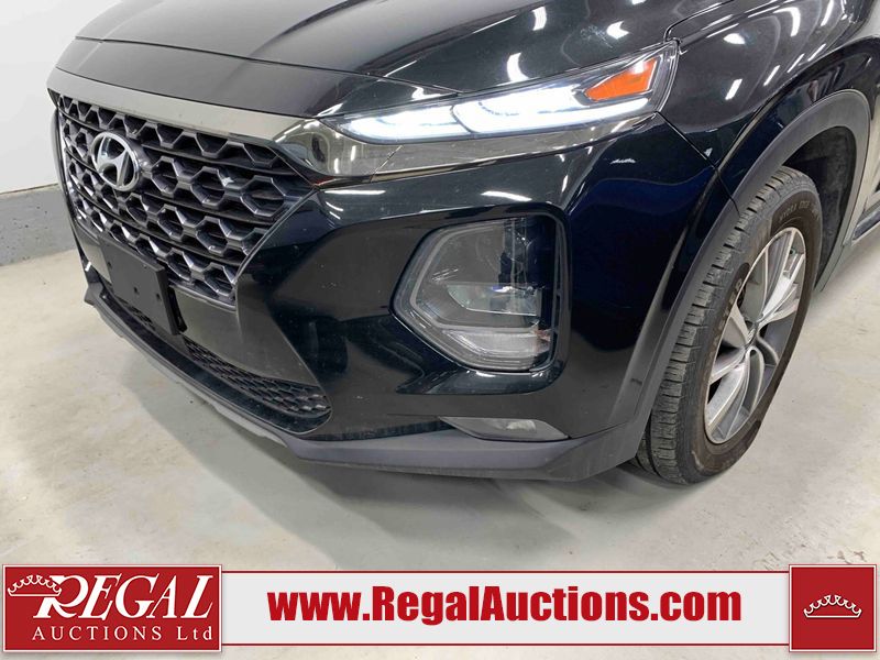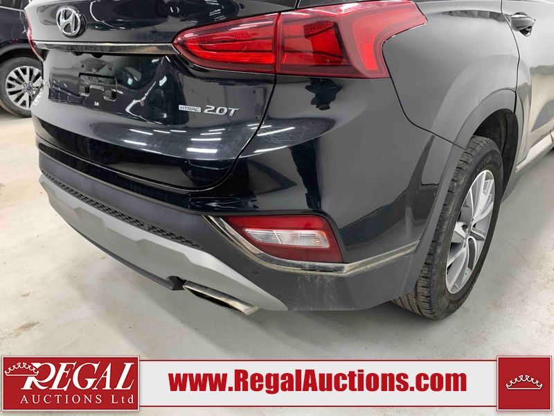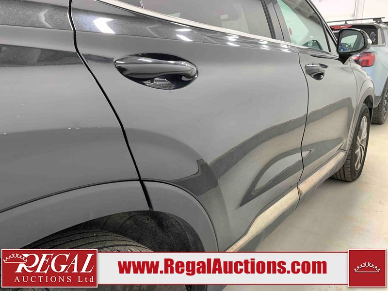 This 2019 HYUNDAI SANTA FE PREFERRED 4D UTILITY 4WD 2.0L is powered by a turbocharged 4 cylinder gasoline engine and an automatic transmission. It is equipped with four wheel drive. The SUV has seats for 5 people. The SUV has low mileage for its age. The vehicle has high value options including a sunroof, power seats, heated seats, and a backup camera. The body looks to be in rough condition overall. There is severe hail on the right rear fender. There is a fair amount of hail on the roof. There are incidental chips on the front bumper and hood. There is dent damage on the left front fender. There is incidental hail on the left front door, left rear door, left rear fender, right rear door, right front door, and right front fender. The left rear fender has parts missing. There are very minor scratches in many areas around the body. There are very minor chips in many areas around the body. The interior looks to be in fair condition overall. The dashboard, driver's seat, passenger seat, rear seats, and doors are dirty. The windshield is chipped. All of the tires have lots of tread remaining.