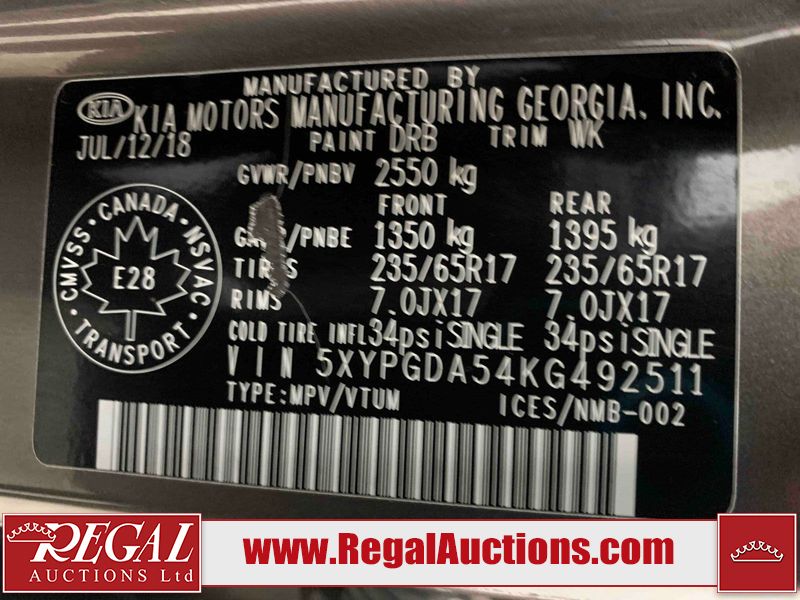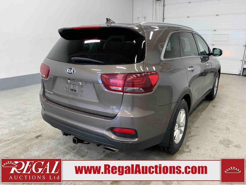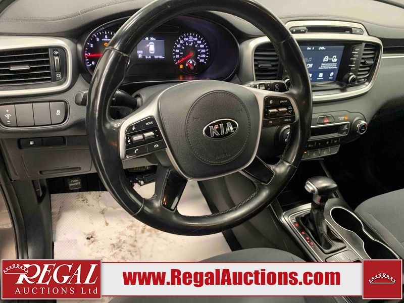 This 2019 KIA SORENTO LX 4D UTILITY AWD 3.3L is powered by a 6 cylinder gasoline engine and an automatic transmission. It is equipped with four wheel drive. The SUV has seats for 7 people. The SUV has high mileage for its age. The vehicle has high value options including power seats, heated seats, and a backup camera. The Check Engine light is on. The vehicle has some mechanical problems. The engine runs rough. This unit is misfiring. The trunk does not open. The body looks to be in fair condition overall. There are incidental scratches on the front bumper, rear bumper, right rear door, and right front door. There are incidental chips on the rear bumper and right front door. There is slight dent damage on the right rear door. There are very minor chips in many areas around the body. There are very minor scratches in many areas around the body. There is misaligned damage to the rear bumper. The interior looks to be in fair condition overall. The driver's seat is torn. The windshield looks to be in good condition. All of the tires have lots of tread remaining.