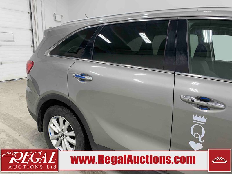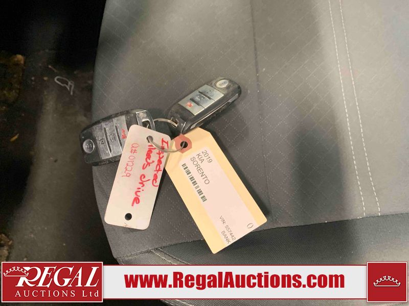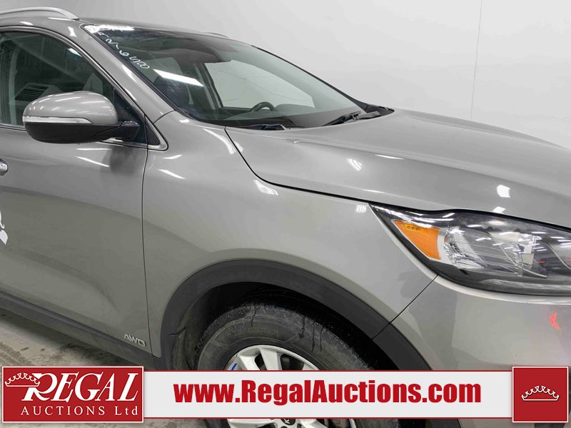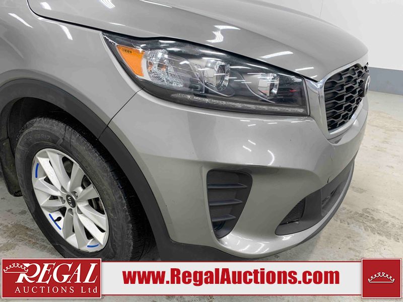This 2019 KIA SORENTO LX 4D UTILITY AWD 2.4L is powered by a 2.4L 4 cylinder gasoline engine and an automatic transmission. It is equipped with four wheel drive. The SUV has seats for 5 people. The mileage is average considering the SUV's age. The vehicle has high value options including heated seats, navigation, and a backup camera. The body looks to be in fair condition overall. The front bumper is cracked. There are incidental scratches on the front bumper, left front door, left rear door, left rear fender, rear bumper, right rear fender, and right front door. There are minimal chips on the front bumper, hood, and rear bumper. There is minimal dent damage on the hood. There are very minor chips in many areas around the body. There are very minor scratches in many areas around the body. The interior looks to be in fair condition overall. The dashboard, driver's seat, passenger seat, rear seats, and doors are dirty. The windshield is cracked. All of the tires have lots of tread remaining.