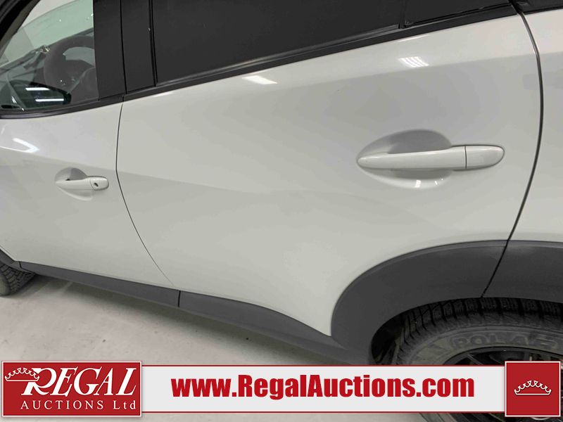 This 2019 MAZDA CX-3 GS 4D HATCHBACK AWD 2.0L is powered by a 4 cylinder gasoline engine and an automatic transmission. It is equipped with four wheel drive. The SUV has seats for 5 people. The SUV has low mileage for its age. The vehicle has high value options including a sunroof, leather upholstery, heated seats, and a backup camera. The body looks to be in good condition overall. There are slight chips on the front bumper, hood, left front fender, and left rear door. There are very minor scratches in many areas around the body. There are very minor chips in many areas around the body. There is very minor dent damage on the roof. The interior looks to be in fair condition overall. The dashboard and doors are dirty. The carpet is dirty. The roofliner is dirty. The windshield is cracked. The driver's side front tire is nearly bald and should be replaced. The driver's side rear tire is worn. Both passenger side tires have lots of tread remaining.