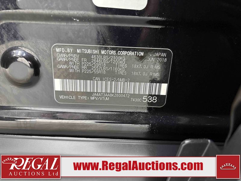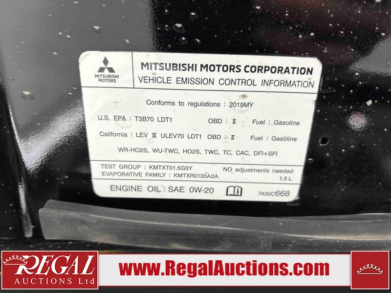 This 2019 MITSUBISHI ECLIPSE 4D SPORT UTILITY AWD is powered by a 1.5L 4-cylinder gasoline engine and an automatic transmission. It is equipped with all-wheel drive. The SUV has seats for 5 people. The mileage is average considering the SUV's age. The vehicle has high-value options including heated seats and a backup camera. The Check Engine and Tire Pressure lights are on. The body looks to be in fair condition overall. There is conspicuous hail on the roof. There are chips on the roof, right rear door, and right front door. There is minimal rust on the roof. There are scratches on the left front door, left rear door, left rear fender, rear bumper, right rear fender, and right front door. There is minimal hail on the left front door. There are very minor chips in many areas around the body. There are very minor scratches in many areas around the body. The interior looks to be in good condition overall. There are cigarette burns on the drivers seat. The windshield is chipped. All of the tires have lots of tread remaining. This SUV is being sold by an automotive broker. The vehicle will be sold with the following declarations: Claims Total $10,000 - $14,999 (See Footnote 1) and Hail Damage (See Footnote 2). Footnotes: 1) The vehicle's total recorded insurance claims history is between $10,000 - $14,999. This is the amount of money that was paid out by an insurance company for repairs to cover claims against the vehicle's insurance policy. This information is provided by CarFax. 2) This vehicle shows signs of damage from a hail storm. Hail damage is not always clearly visible in photographs. Regal Auctions Ltd. makes no guarantee or warranty, either express or implied, with respect to the data provided in this report. The information has been provided from the consignor and from sources generally believed to be reliable, however the accuracy of this information cannot be guaranteed by Regal Auctions.