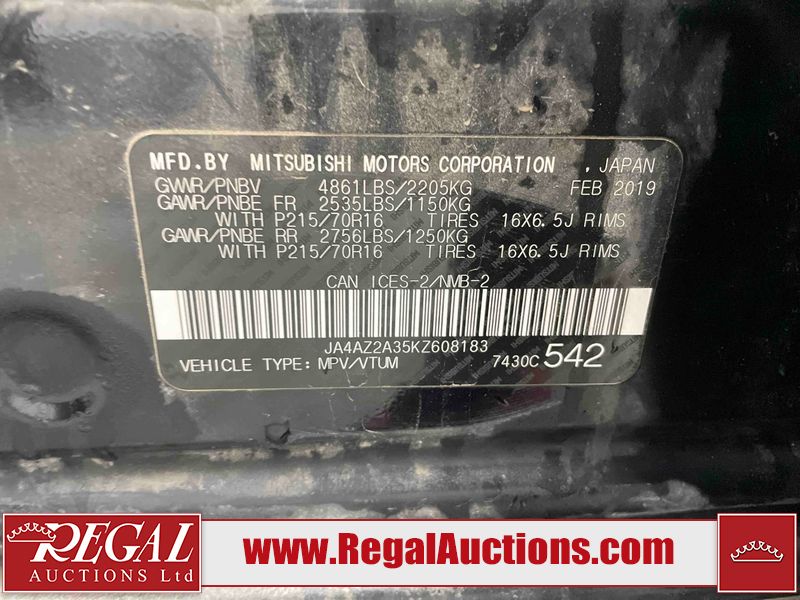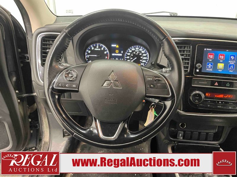 This 2019 MITSUBISHI OUTLANDER ES AWD 2.4L is powered by a 4 cylinder gasoline engine and an automatic transmission. It is equipped with four wheel drive. The SUV has seats for 7 people. The SUV has high mileage for its age. The vehicle has high value options including heated seats, a backup camera, and a power lift gate. The Tire Pressure light is on. The body looks to be in fair condition overall. There are chips on the grille, hood, and roof. There are scratches on the roof, left front fender, and right front fender. There is minimal rust on the roof. There is minor dent damage on the left front door, left rear fender, and rear bumper. There are very minor chips in many areas around the body. There are very minor scratches in many areas around the body. There is very minor dent damage in a few areas around the body. There is damage to the rear bumper. The interior looks to be in fair condition overall. The dashboard is worn. The driver's seat, passenger seat, rear seats, and doors are stained. The carpet is dirty. The windshield is chipped. The tires are all worn.