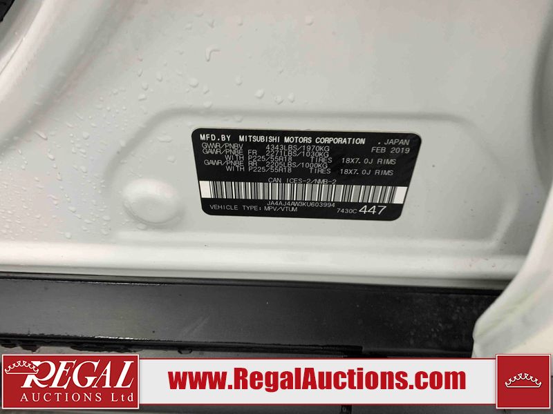 This 2019 MITSUBISHI RVR SE BLACK EDITION 4D UTILITY 4WD 2.4L is powered by a 4 cylinder gasoline engine and an automatic transmission. It is equipped with four wheel drive. The SUV has seats for 5 people. The SUV has low mileage for its age. The vehicle has high value options including a sunroof, leather upholstery, heated seats, and a backup camera. The body looks to be in rough condition overall. The front bumper is cracked. The grille is cracked. There are incidental chips on the front bumper, hood, left front fender, left front door, left rear door, left rear fender, rear bumper, right rear fender, right rear door, right front door, and right front fender. There are slight scratches on the front bumper, hood, roof, left front fender, left front door, left rear door, left rear fender, rear bumper, rear door, right rear fender, right rear door, right front door, and right front fender. There is minor rust on the hood. There is minimal dent damage on the hood and right rear fender. There are very minor chips in a few areas around the body. The interior looks to be in fair condition overall. The driver's seat is worn. The carpet is dirty. The windshield is chipped. The driver side mirror is broken. All of the tires have lots of tread remaining.
