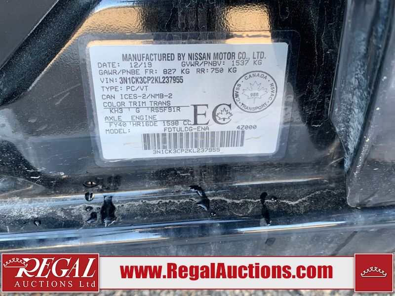 This 2019 NISSAN MICRA S 4D HATCHBACK FWD 1.6L is powered by a 4 cylinder gasoline engine and a 5 speed manual transmission. It is a two wheel drive model. The SUV has seats for 4 people. The mileage is average considering the SUV's age. The vehicle does not have power windows or power locks. An aftermarket stereo system has been installed. The vehicle has some mechanical problems. All fuses and relays appear to be in place and look good. Wipers and hazard lights run all the time when booster pack is applied. Engine started by jumping starter terminal. Engine runs good, no abnormal noises. Battery is dead and requires replacement. Suspect failed BCM due to the behaviour of the wipers and hazard lights. The body looks to be in rough condition overall. The rear bumper is cracked. There are incidental chips on the front bumper, grille, hood, roof, left front fender, left front door, left rear door, left rear fender, rear bumper, rear door, right rear fender, right rear door, right front door, and right front fender. There are scratches on the front bumper, hood, left front fender, left front door, left rear door, left rear fender, rear bumper, rear door, right rear fender, right rear door, right front door, and right front fender. There is minor dent damage on the right rear door and right front fender. The interior looks to be in good condition overall. The windshield looks to be in good condition. The tires are all worn.
