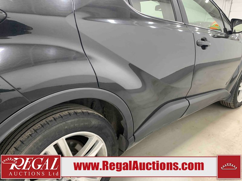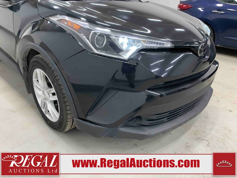 This 2019 TOYOTA C-HR XLE 4D UTILITY FWD 2.0L is powered by a 4 cylinder gasoline engine and an automatic transmission. It is a two wheel drive model. The SUV has seats for 5 people. The SUV has low mileage for its age. The vehicle has high value options including a backup camera. The body looks to be in fair condition overall. The front bumper is misaligned. The fascia is broken on the front bumper. There are scratches on the front bumper and hood. There are chips on the front bumper and hood. There is incidental dent damage on the left rear door. There are very minor chips in many areas around the body. There are very minor scratches in many areas around the body. The interior looks to be in fair condition overall. The dashboard, driver's seat, passenger seat, rear seats, and doors are dirty. The carpet is dirty. The windshield is cracked. All of the tires have lots of tread remaining.