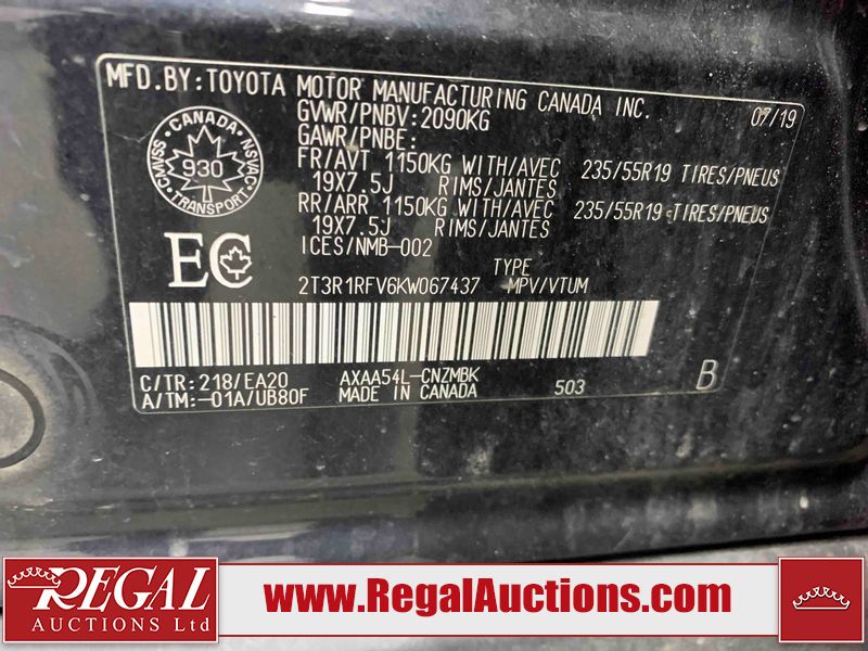 This 2019 TOYOTA RAV4 XLE 4D UTILITY AWD 2.5L is powered by a 4 cylinder gasoline engine and an automatic transmission. It is equipped with four wheel drive. The SUV has seats for 5 people. The SUV has low mileage for its age. The vehicle has high value options including a sunroof, leather upholstery, power seats, heated seats, a backup camera, and a power lift gate. The body looks to be in rough condition overall. There are very bad scratches on the front bumper. The right front door has been repainted poorly. There are pronounced scratches on the hood. There are chips on the front bumper and roof. There are slight scratches on the roof, left rear door, rear bumper, and rear door. There is incidental dent damage on the left rear door, left rear fender, rear door, and rear bumper fascia. There are very minor chips in many areas around the body. There are very minor scratches in many areas around the body. The interior looks to be in fair condition overall. The driver's seat, passenger seat, and doors are worn. The roof liner has water stains and may have possible leaks. The windshield is damaged. All of the tires have lots of tread remaining. Aftermarket alloy wheels have been mounted, the factory alloys are missing.