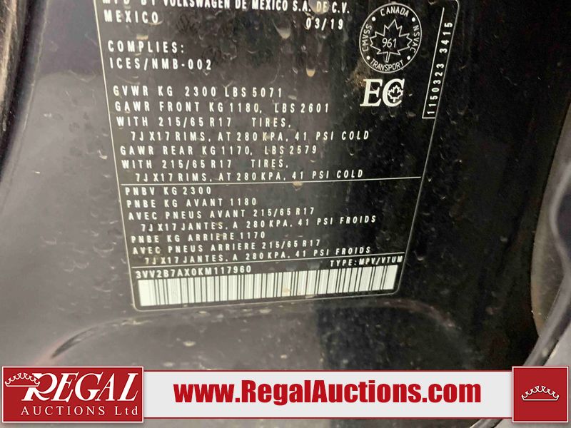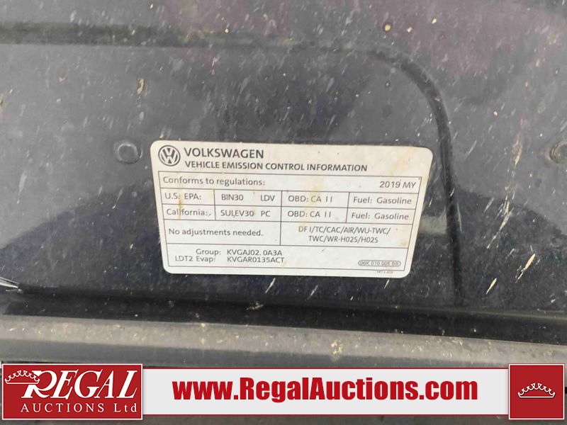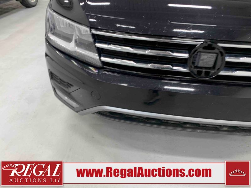 This 2019 VOLKSWAGEN TIGUAN COMFORTLINE 4D UTILITY AWD 2.0L is powered by a 4 cylinder gasoline engine and an automatic transmission. It is equipped with four wheel drive. The SUV has seats for 5 people. The SUV has low mileage for its age. The vehicle has high value options including leather upholstery, power seats, heated seats, and a backup camera. The body looks to be in good condition overall. The emblem on the grille is missing. There are slight chips on the hood. There are scratches on the rear bumper and right front door. There is incidental dent damage on the right front door. There are very minor chips in many areas around the body. There are very minor scratches in many areas around the body. There is very minor dent damage in many areas around the body. The interior looks to be in good condition overall. The windshield is cracked. All of the tires have lots of tread remaining.