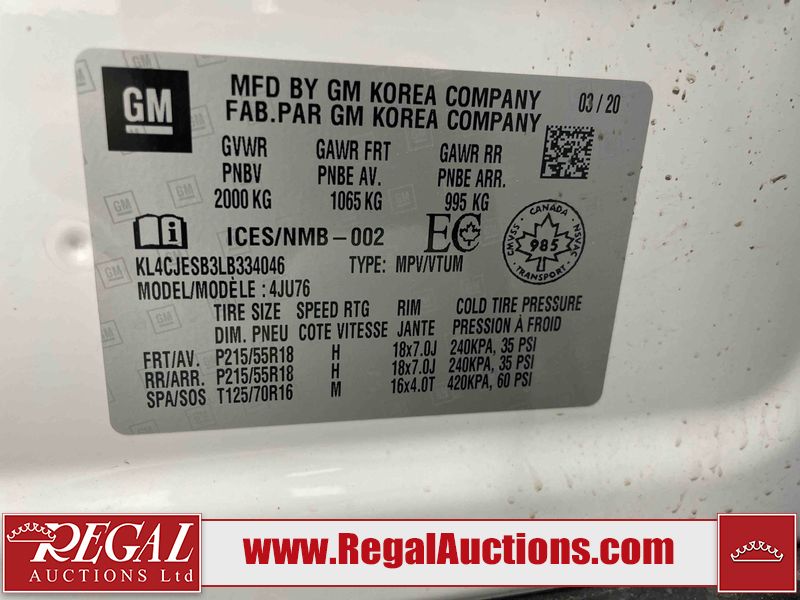 This 2020 BUICK ENCORE 4D UTILITY AWD 1.4L is powered by a turbocharged 1.4L 4CYL GAS 4 cylinder gasoline engine and an automatic transmission. It is equipped with four wheel drive. The SUV has seats for 5 people. The SUV has high mileage for its age. The vehicle has high value options including power seats and a backup camera. The Check Engine light is on.The body looks to be in good condition overall. The left tailight is broken. There are incidental chips on the front bumper and hood. There are incidental scratches on the rear bumper. There are very minor chips in some areas around the body. There are very minor scratches on the left rear door. The interior looks to be in good condition overall. The windshield is cracked. The tires are all worn.