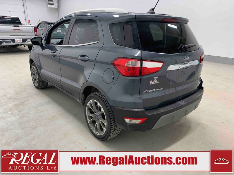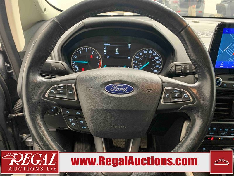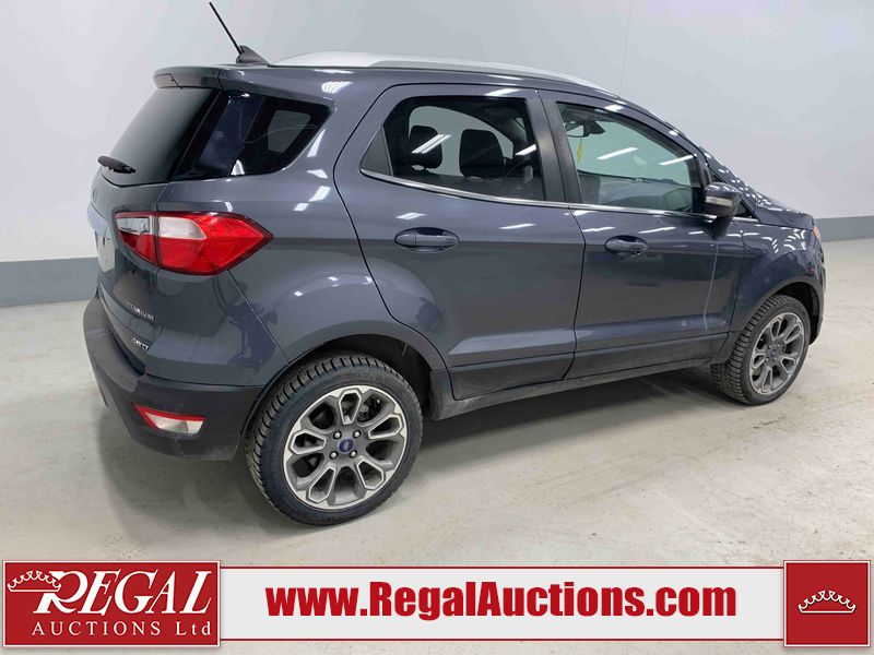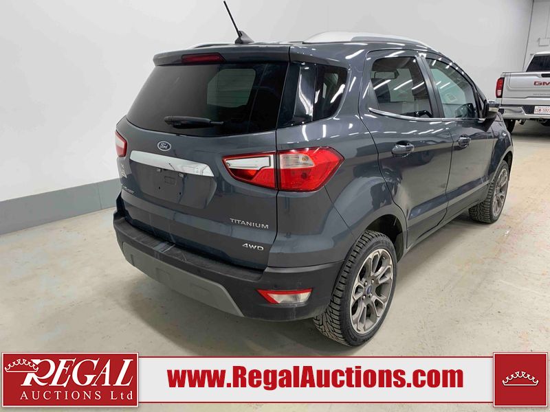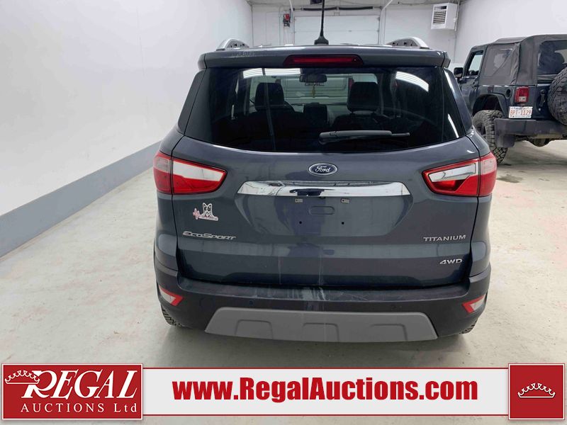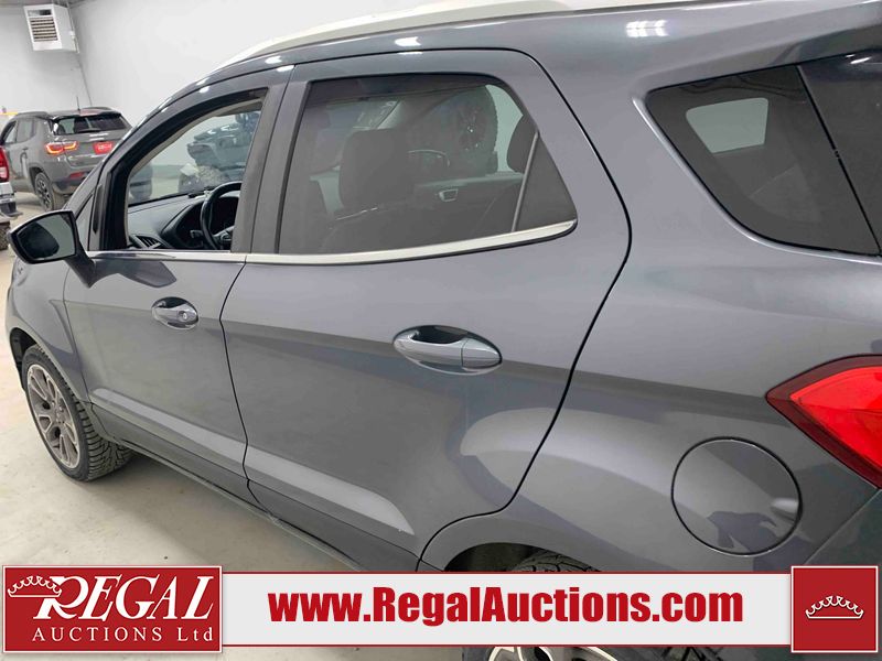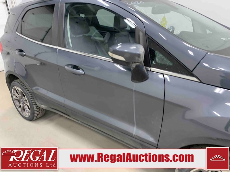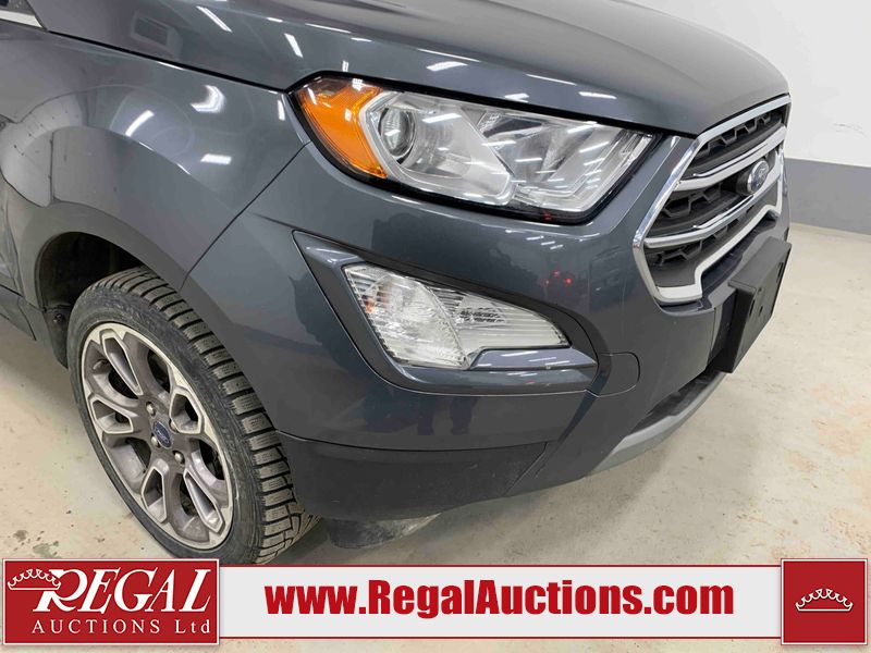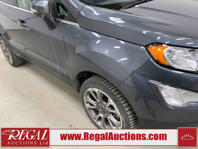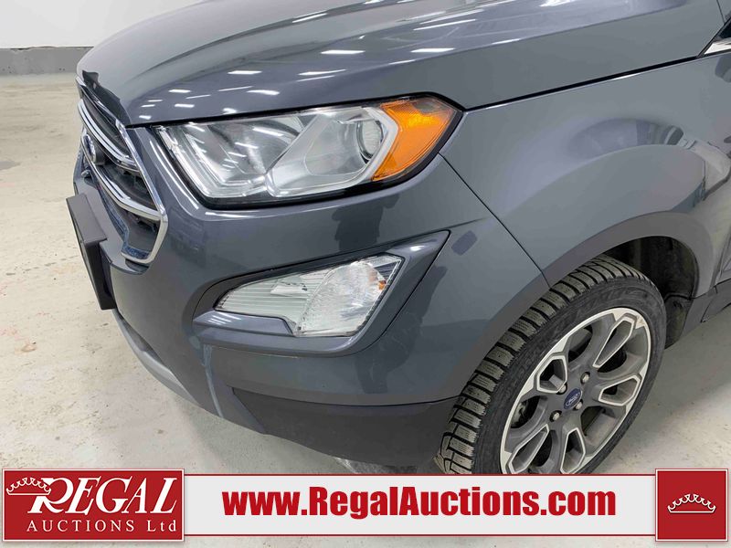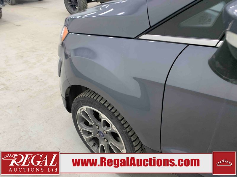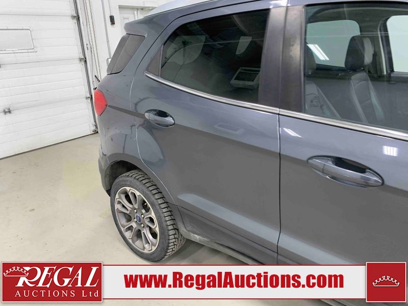 This 2020 FORD ECOSPORT TITANIUM 4D UTILITY AWD 2.0L is powered by a 4 cylinder gasoline engine and an automatic transmission. It is equipped with four wheel drive. The SUV has seats for 5 people. The SUV has low mileage for its age. The vehicle has high value options including a sunroof, leather upholstery, power seats, heated seats, navigation, and a backup camera. The body looks to be in fair condition overall. The fog light trim is loose. There are chips on the front bumper, hood, left rear door, and rear door. There are slight scratches on the front bumper, hood, left front fender, rear bumper, rear door, right rear fender, right rear door, and right front fender. There is dent damage on the rear door. There are very minor chips in many areas around the body. There is very minor dent damage in a few areas around the body. There are very minor scratches in some areas around the body. The rear bumper is misaligned. The interior looks to be in fair condition overall. The dashboard, driver's seat, passenger seat, rear seats, and doors are dirty. The windshield is chipped. The front passenger quarter window is cracked. All of the tires have lots of tread remaining.