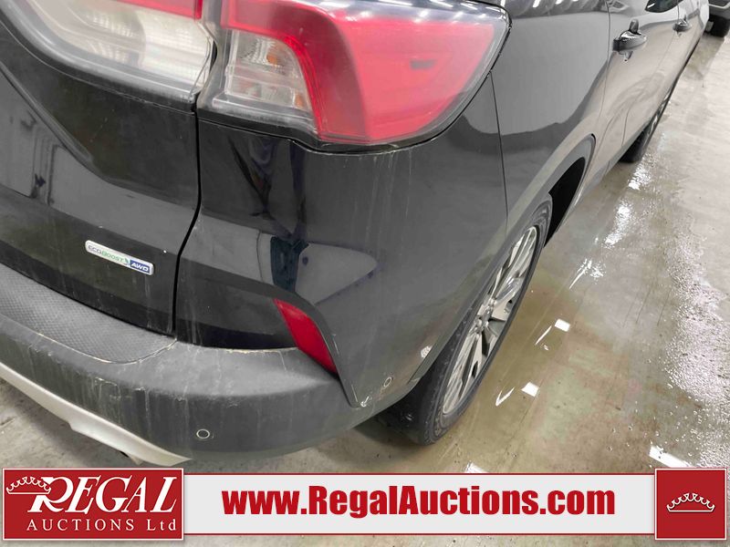 This 2020 FORD ESCAPE TITANIUM 4D UTILITY AWD 2.0L is powered by a turbocharged 4 cylinder gasoline engine and an automatic transmission. It is equipped with four wheel drive. The SUV has seats for 5 people. The SUV has high mileage for its age. The vehicle has high value options including leather upholstery, power seats, heated seats, navigation, a backup camera, and a power lift gate. The Check Engine light is on. The body looks to be in fair condition overall. There are incidental chips on the front bumper, hood, left front fender, left front door, left rear door, left rear fender, rear bumper, rear door, right rear fender, right rear door, right front door, and right front fender. There are scratches on the front bumper, hood, left front fender, left front door, left rear door, left rear fender, rear bumper, rear door, right rear fender, right rear door, and right front door. There are very minor chips in a few areas around the body. There is very minor dent damage in a few areas around the body. There are very minor scratches on the right front fender. There is piece missing damage to the doors. The interior looks to be in rough condition overall. The doors are broken. The dashboard and doors are dirty. The passenger seat is stained. The driver's seat, passenger seat, and rear seats are dirty. The carpet is dirty. The roof liner is dirty. The windshield is damaged. The right tail light is cracked. The front tires and the driver's side rear tire are all nearly bald and should be replaced. The passenger side rear tire is worn.