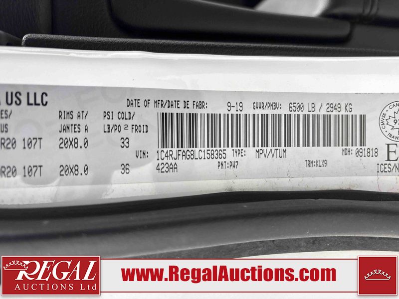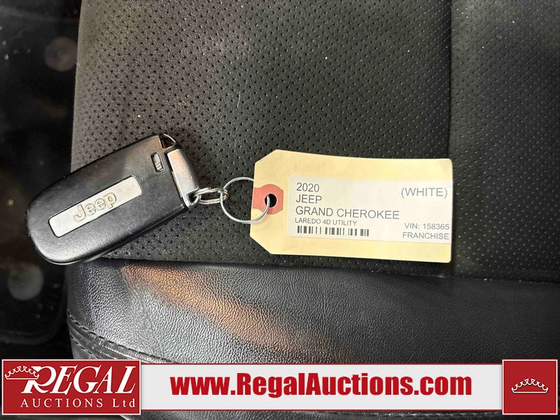 This 2020 JEEP GRAND CHEROKEE LAREDO 4D UTILITY is powered by a 3.6L V6 gasoline engine and an automatic transmission. It is equipped with four-wheel drive. The SUV has seats for 5 people. The mileage is average considering the SUV's age. LAREDO is a very popular trim level. The vehicle has high-value options including leather upholstery, power seats, heated seats, navigation, and a backup camera. The body looks to be in good condition overall. There are minor chips on the left rear fender. There are scratches on the right rear fender and right front fender. There are very minor chips in many areas around the body. There are very minor scratches in many areas around the body. The interior looks to be in good condition overall. The windshield is damaged. The front tires have lots of tread. The driver's side rear tire is worn and the passenger side rear tire is nearly bald. It should be replaced. This SUV is being sold by a franchise dealership. The vehicle will be sold with the following declarations: Dealership Trade-In (See Footnote 1). Footnotes: 1) This vehicle is being sold on behalf of a franchise dealership. Franchise Dealerships are automotive sales companies who are directly connected to an automotive manufacturer like Ford, Tesla, Honda, BMW, or similar. Regal Auctions Ltd. makes no guarantee or warranty, either express or implied, with respect to the data provided in this report. The information has been provided from the consignor and from sources generally believed to be reliable, however the accuracy of this information cannot be guaranteed by Regal Auctions.