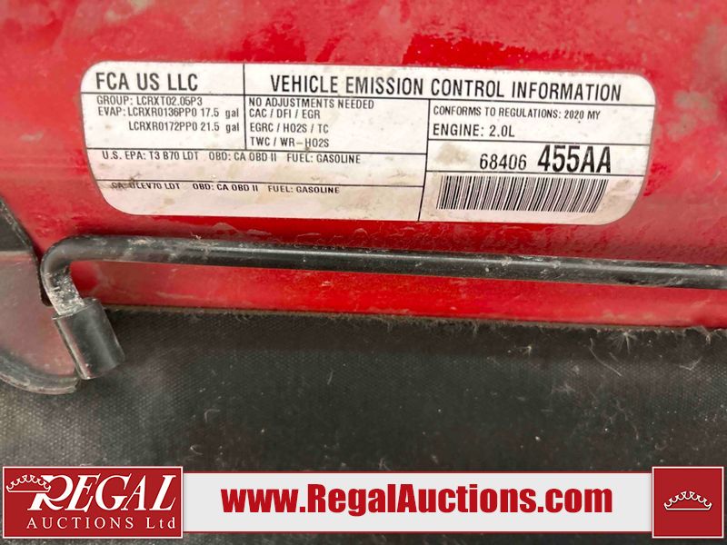This 2020 JEEP WRANGLER 2D UTILITY is powered by a turbocharged 2.0 liter 4-cylinder gasoline engine and an automatic transmission. It is equipped with four-wheel drive. The SUV has seats for 5 people. The mileage is average considering the SUV's age. The vehicle has high-value options, including navigation. The Tire Pressure light is on. The vehicle has some mechanical problems. The battery is dead. The vehicle requires a boost to start and may require a booster pack in order to stay running. (See Footnote 1) The body looks to be in good condition overall. There is slight rust on the left front door, left rear door, and right front door. There are chips in many areas around the body. There are scratches in many areas around the body. The interior looks to be in good condition overall. The windshield looks to be in good condition. All of the tires have lots of tread remaining. This SUV is being sold by a franchise dealership. The vehicle will be sold with the following declarations: Dealership Trade-In (See Footnote 2) and Out of Province - SK (See Footnote 3). Footnotes: 1) We've identified some mechanical problems with the vehicle. However, the vehicle has not undergone a mechanical inspection and our findings are not to be considered a complete evaluation of the vehicle's mechanical condition. Review our Buyer Protection Policy to see how Regal Auctions protects you from undisclosed mechanical problems. 2) This vehicle is being sold on behalf of a franchise dealership. Franchise Dealerships are automotive sales companies who are directly connected to an automotive manufacturer like Ford, Tesla, Honda, BMW, or similar. 3) The vehicle's last registered jurisdiction is Saskatchewan. The purchaser must have the vehicle undergo and pass an Out of Province inspection before it can be registered in Alberta. Regal Auctions Ltd. makes no guarantee or warranty, either express or implied, with respect to the data provided in this report. The information has been provided from the consignor and from sources generally believed to be reliable, however the accuracy of this information cannot be guaranteed by Regal Auctions.