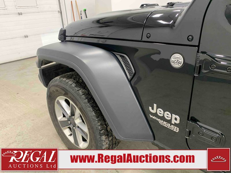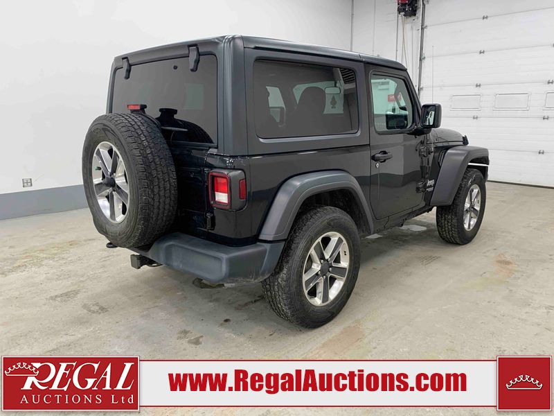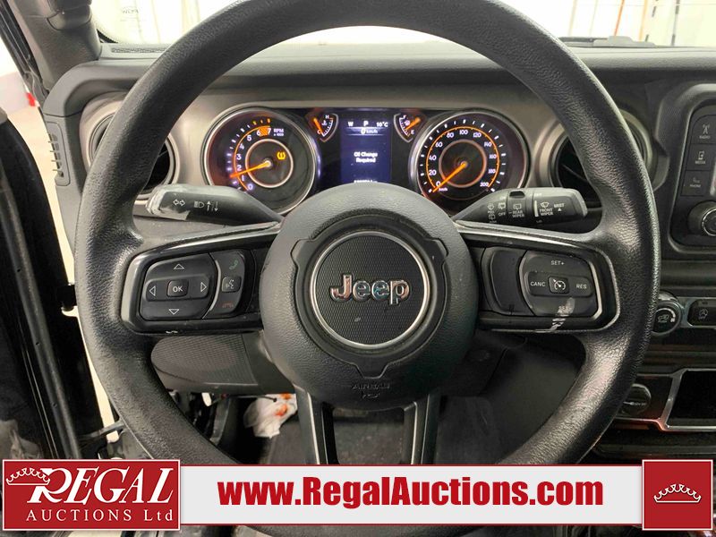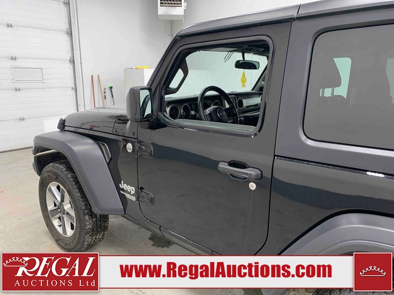 This 2020 JEEP WRANGLER SPORT 2D UTILITY 4WD 2.0L is powered by a turbocharged 4 cylinder gasoline engine and an automatic transmission. It is equipped with four wheel drive. The SUV has seats for 5 people. The mileage is average considering the SUV's age. The vehicle has high value options including heated seats and a backup camera. The vehicle does not have power windows or power locks. The body looks to be in fair condition overall. There are minor scratches on the front bumper, hood, left rear fender, right rear fender, right front door, and right front fender. There are incidental chips on the grille, roof, and rear door. There are very minor chips in many areas around the body. There are very minor scratches in some areas around the body. There is very minor dent damage on the left rear fender. The interior looks to be in fair condition overall. The dashboard, driver's seat, passenger seat, rear seats, and doors are dirty. The windshield is cracked. The driver's side rear tire is worn. All of the other tires have lots of tread remaining.