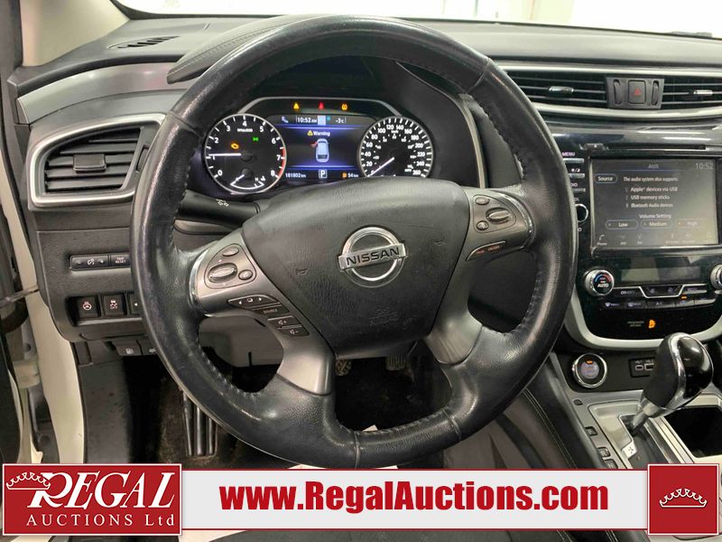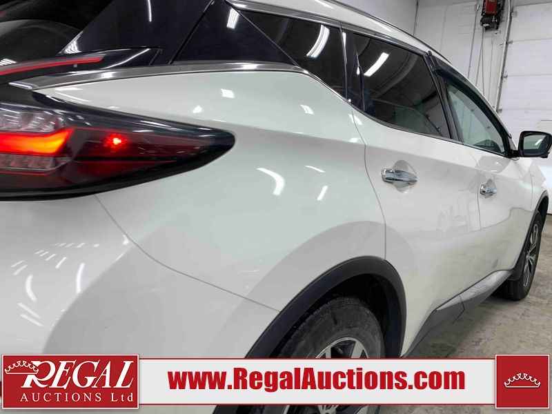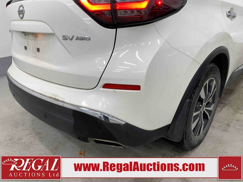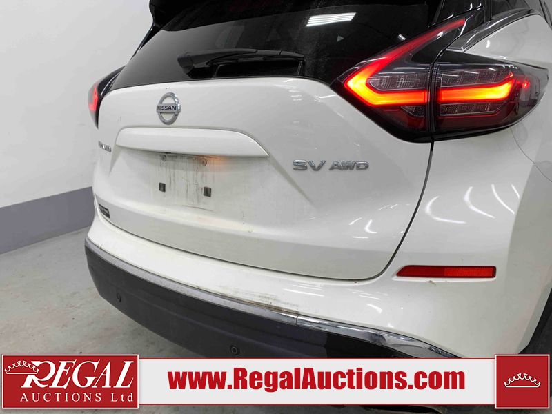 This 2020 NISSAN MURANO SV 4D UTILITY 4WD 3.5L is powered by a 6 cylinder gasoline engine and an automatic transmission. It is equipped with four wheel drive. The SUV has seats for 5 people. The SUV has high mileage for its age. The vehicle has high value options including a sunroof, power seats, heated seats, navigation, a backup camera, and a power lift gate. The Check Engine light is on.The body looks to be in fair condition overall. There are chips on the front bumper, grille, hood, roof, left front fender, rear bumper, rear door, and right front fender. There is slight dent damage on the left front fender and right rear door. There are minimal scratches on the left front door and rear door. There are very minor scratches in many areas around the body. There is very minor dent damage in a few areas around the body. There are very minor chips in many areas around the body. The interior looks to be in fair condition overall. The driver's seat and passenger seat are stained. The carpet is dirty. The right front window is cracked. The windshield is chipped. All of the tires are nearly bald and should be replaced.