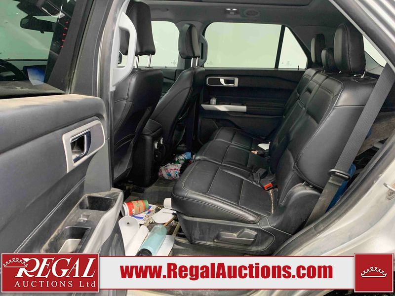 This 2021 FORD EXPLORER XLT 4D UTILITY AWD 2.3L is powered by a turbocharged 4 cylinder gasoline engine and an automatic transmission. It is equipped with four wheel drive. The SUV has seats for 6 people. The SUV has high mileage for its age. The vehicle has high value options including a sunroof, leather upholstery, power seats, heated seats, navigation, a backup camera, and a power lift gate. The Hill descent control fault, pre-collision assist not available, service advance trac, four-wheel-drive fault service required, and lights are on. The body looks to be in good condition overall. There is slight hail on the hood and roof. There are scratches on the rear bumper and rear door. There are very minor chips in many areas around the body. There are very minor scratches in many areas around the body. There is very minor dent damage on the left rear door. There is plastic trim lifting damage to the left rear fender. The interior looks to be in fair condition overall. The dashboard, driver's seat, passenger seat, rear seats, and doors are dirty. The windshield is cracked. All of the tires have lots of tread remaining.