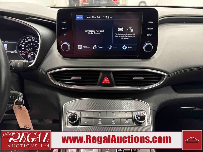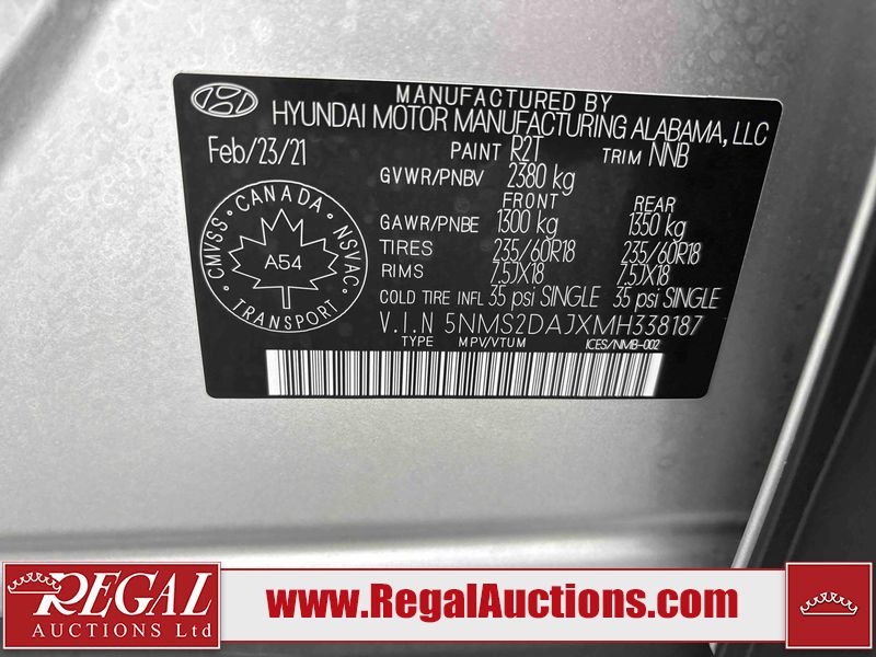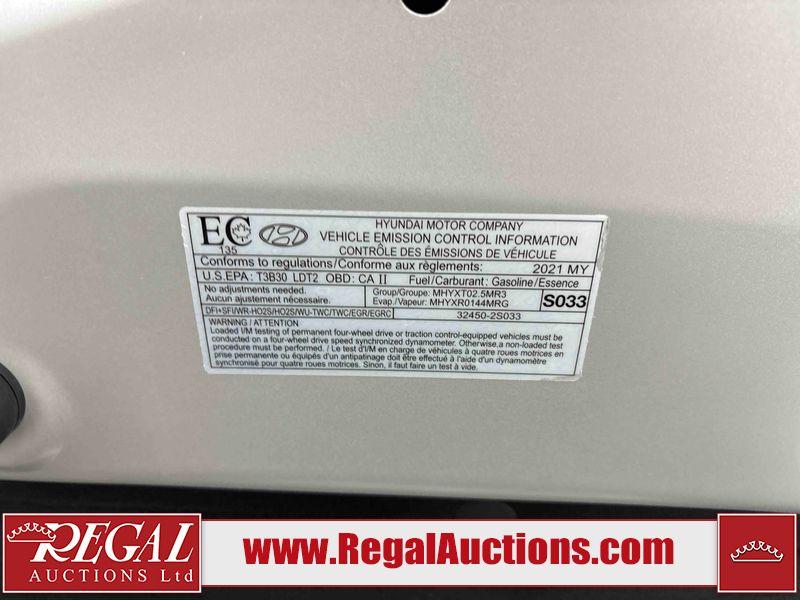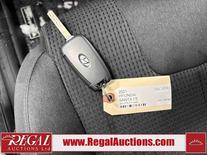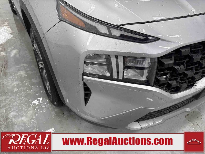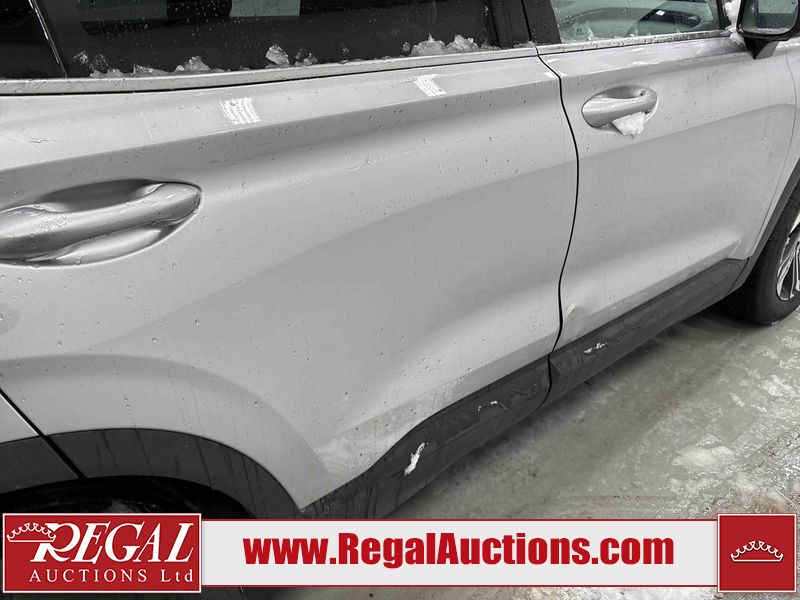 This 2021 HYUNDAI SANTA FE 4D UTILITY AWD is powered by a 2.5L 4-cylinder gasoline engine and an automatic transmission. It is equipped with all-wheel drive. The SUV has seats for 5 people. The SUV has low mileage for its age. The body looks to be in fair condition overall. The front bumper is cracked. There are scratches on the front bumper, right rear door, and right front door. There is minimal rust on the right rear door and right front door. There is dent damage on the right front door. There are very minor chips in many areas around the body. There are very minor scratches in many areas around the body. There is very minor dent damage on the right rear door. The interior looks to be in good condition overall. The windshield looks to be in good condition. All of the tires have lots of tread remaining. This SUV is being sold by an automotive broker. The vehicle will be sold with the following declarations: Out of Province - MB (See Footnote 1). Footnotes: 1) The vehicle's last registered jurisdiction is Manitoba. The purchaser must have the vehicle undergo and pass an Out of Province inspection before it can be registered in Alberta. Regal Auctions Ltd. makes no guarantee or warranty, either express or implied, with respect to the data provided in this report. The information has been provided from the consignor and from sources generally believed to be reliable, however the accuracy of this information cannot be guaranteed by Regal Auctions.