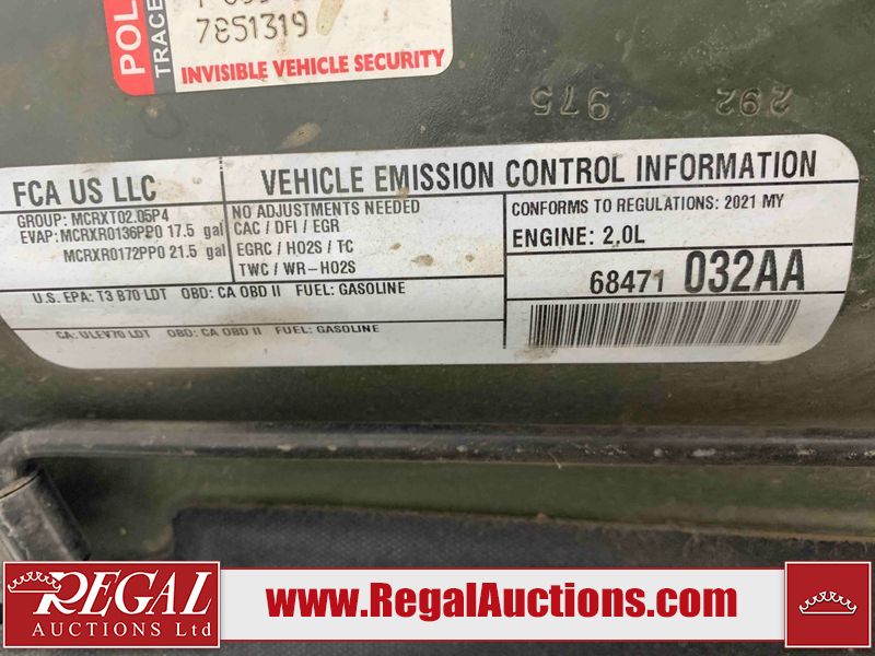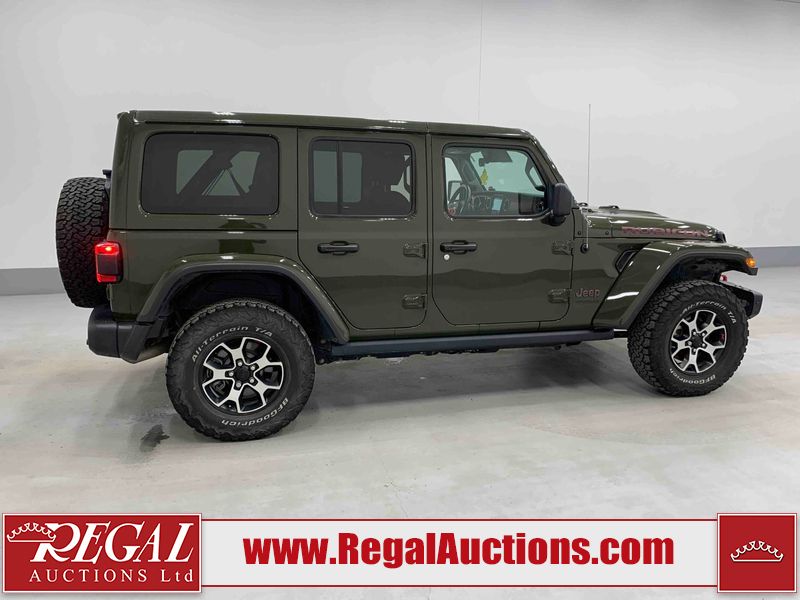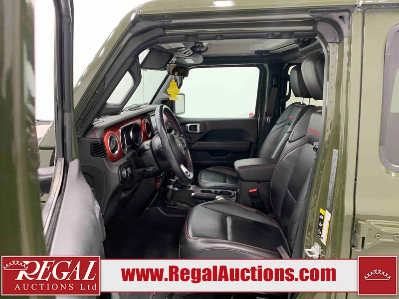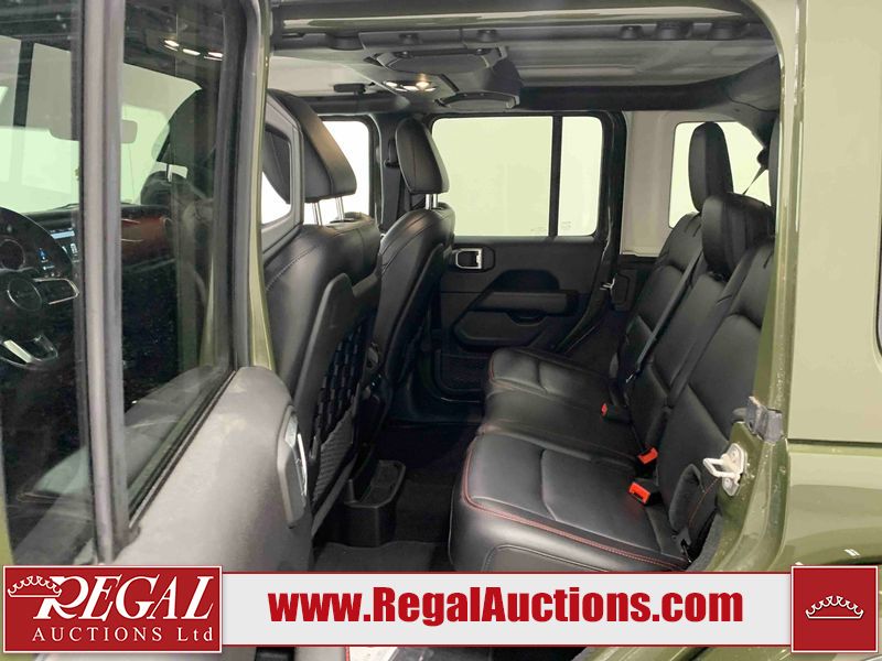 This 2021 JEEP WRANGLER UNLIMITED RUBICON 4D UTILITY 4WD 2.0L is powered by a turbocharged 4 cylinder gasoline engine and an automatic transmission. It is equipped with four wheel drive. The SUV has seats for 5 people. The SUV has low mileage for its age. The vehicle has high value options including leather upholstery, heated seats, navigation, a convertible top, and a backup camera. The body looks to be in fair condition overall. There are slight chips on the front bumper, grille, hood, left front fender, left rear fender, rear bumper, and right rear door. There are very minor scratches in many areas around the body. There are very minor chips in many areas around the body. The interior looks to be in good condition overall. The carpet is dirty. The windshield looks to be in good condition. The passenger front tire is worn. The rest of the tires all have lots of tread remaining.