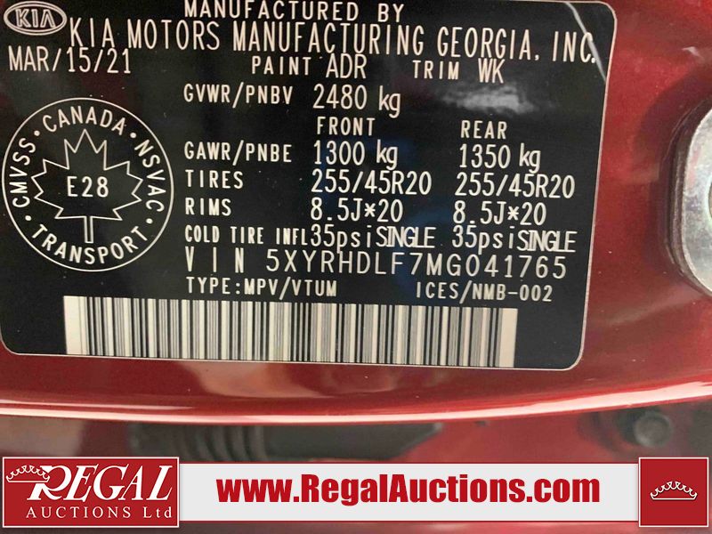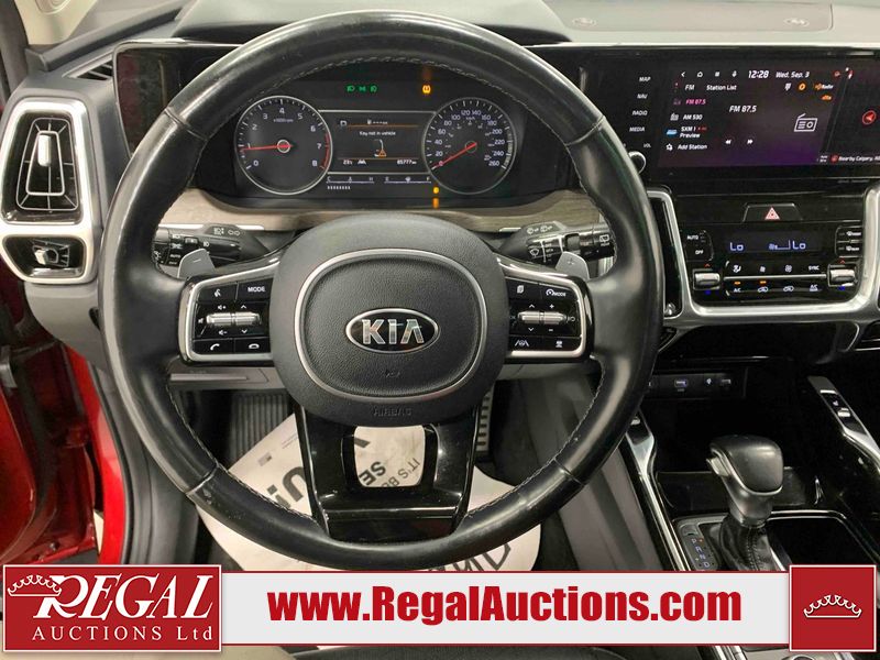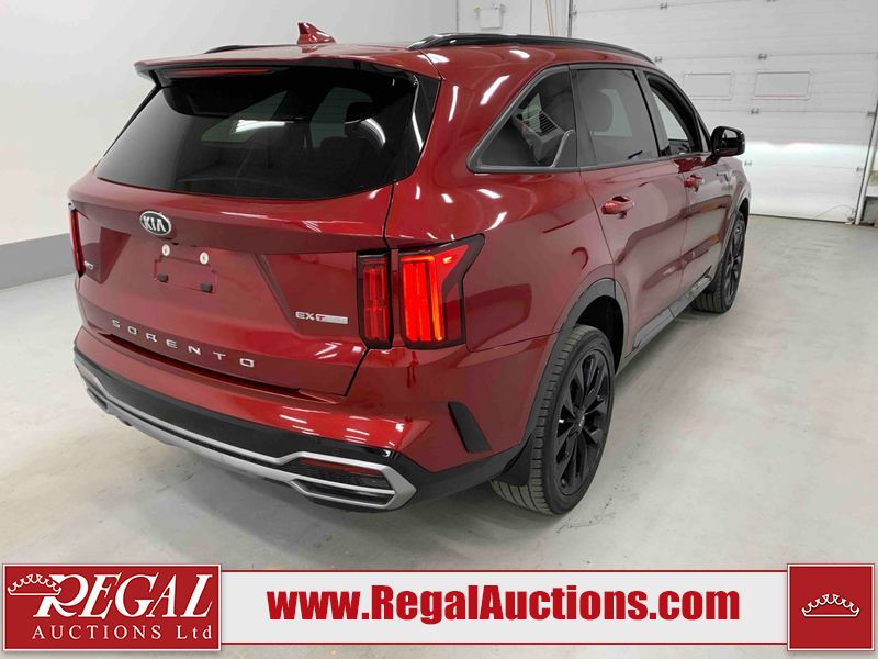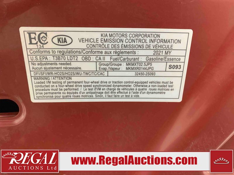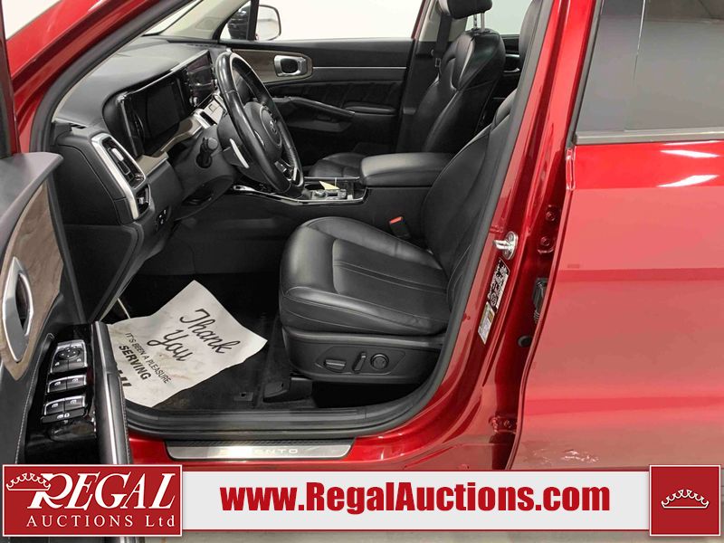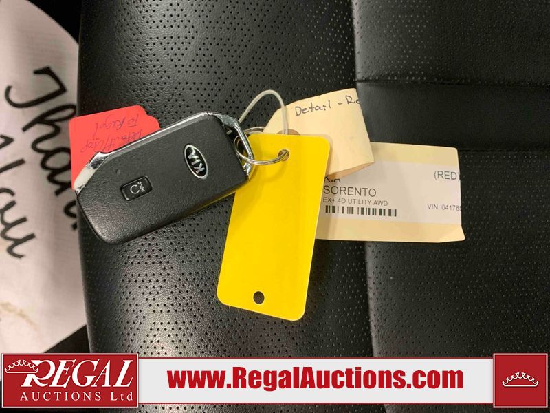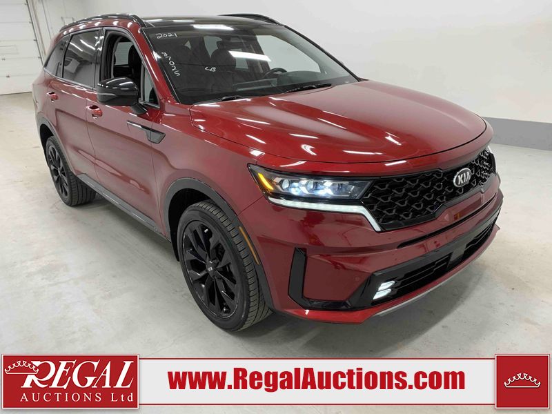 This 2021 KIA SORENTO EX+ 4D UTILITY AWD is powered by a turbocharged 2.5L 4-cylinder gasoline engine and an automatic transmission. It is equipped with four wheel drive. The SUV has seats for 6 people. The mileage is average considering the SUV's age. The vehicle has high-value options including a sunroof, leather upholstery, power seats, heated seats, navigation, a backup camera, and a power liftgate. The Tire Pressure light is on. The body looks to be in good condition overall. There are chips on the hood. There are slight scratches on the hood, right rear fender, and right rear door. There are very minor chips in a few areas around the body. There are very minor scratches in many areas around the body. Some panels around the body have been repainted. The interior looks to be in good condition overall. The windshield looks to be in good condition. Both rear tires and the passenger side front tire are worn. The driver's side front tire has lots of tread remaining. This SUV is being sold by an automotive broker. Regal Auctions Ltd. makes no guarantee or warranty, either express or implied, with respect to the data provided in this report. The information has been provided from the consignor and from sources generally believed to be reliable, however the accuracy of this information cannot be guaranteed by Regal Auctions.