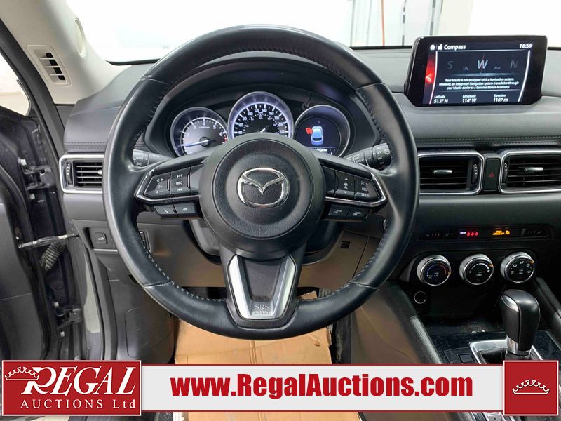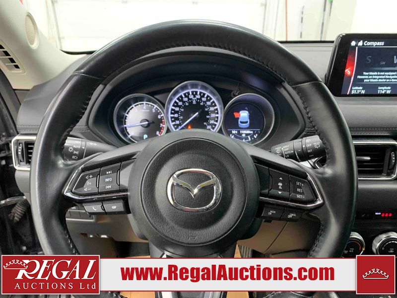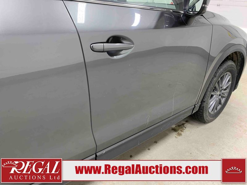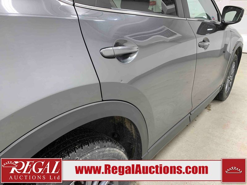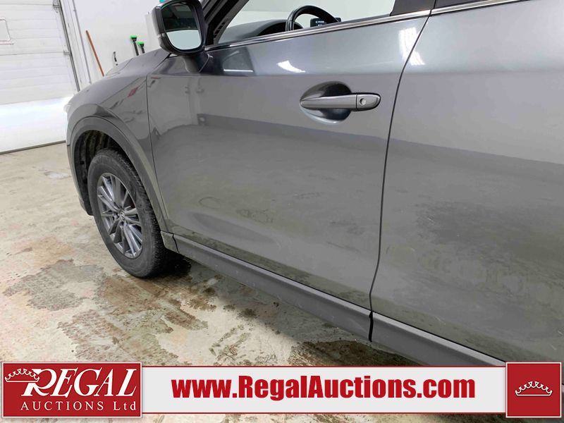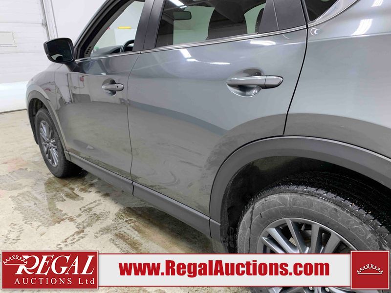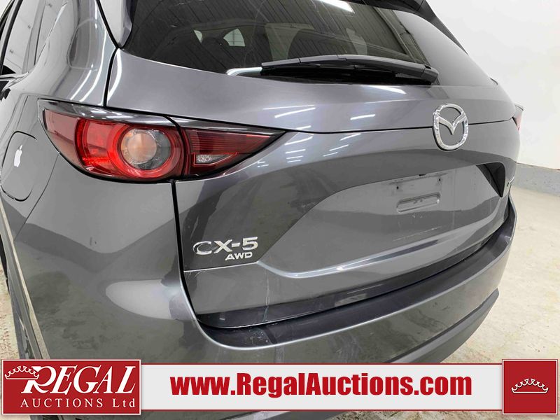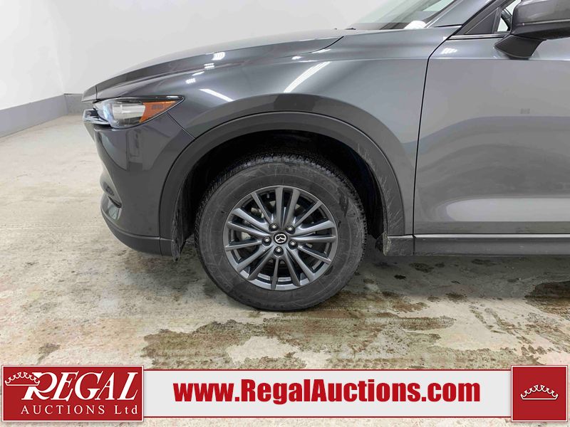 This 2021 MAZDA CX-5 GS 4D UTILITY AWD 2.5L is powered by a 4 cylinder gasoline engine and an automatic transmission. It is equipped with four wheel drive. The SUV has seats for 5 people. The mileage is average considering the SUV's age. The vehicle has high value options including leather upholstery, power seats, heated seats, a backup camera, and a power lift gate. The body looks to be in good condition overall. There is slight dent damage on the rear door. There are very minor scratches in many areas around the body. There is very minor dent damage on the hood. There are very minor chips on the rear bumper. The interior looks to be in good condition overall. The carpet is dirty. The windshield looks to be in good condition. The tires are all worn.
