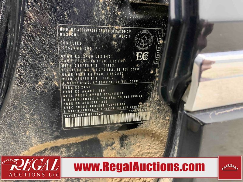 This 2021 VOLKSWAGEN TIGUAN HIGHLINE 4D UTILITY AWD 2.0L is powered by a 4 cylinder gasoline engine and an automatic transmission. It is equipped with four wheel drive. The SUV has seats for 5 people. The SUV has high mileage for its age. The vehicle has high value options including a sunroof, leather upholstery, power seats, heated seats, navigation, a backup camera, and a power lift gate. The body looks to be in good condition overall. There are chips on the front bumper and hood. There are minor scratches on the rear bumper. There are very minor scratches in many areas around the body. There are very minor chips in many areas around the body. There is very minor dent damage on the hood. The interior looks to be in good condition overall. The carpet is dirty. The windshield is cracked. All of the tires have lots of tread remaining.