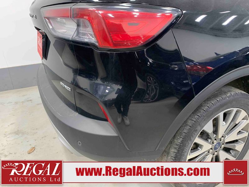 This 2022 FORD ESCAPE TITANIUM 4D UTILITY AWD 2.0L is powered by a turbocharged 4 cylinder gasoline engine and an automatic transmission. It is equipped with four wheel drive. The SUV has seats for 5 people. The SUV has high mileage for its age. The vehicle has high value options including leather upholstery, power seats, heated seats, navigation, a backup camera, and a power lift gate. The Check Engine light is on.The body looks to be in fair condition overall. There are scratches on the front bumper, rear door, and right rear door. There are chips on the hood. There is minimal dent damage on the rear door and right rear fender. There are very minor chips in many areas around the body. There is very minor dent damage in some areas around the body. There are very minor scratches in many areas around the body. The interior looks to be in fair condition overall. The dashboard, driver's seat, passenger seat, rear seats, and doors are dirty. The windshield is cracked. The rear tires are both nearly blad and should be replaced. The passenger side front tire is worn. The driver's side front tire has lots of tread remaining.