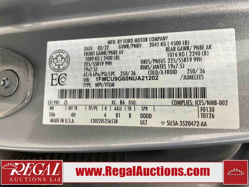 This 2022 FORD ESCAPE 4D SPORT UTILITY is powered by a turbocharged 1.5L 3-cylinder gasoline engine and an automatic transmission. It is equipped with all-wheel drive. The SUV has seats for 5 people. The SUV has high mileage for its age. The vehicle has high-value options including heated seats and a backup camera. The body looks to be in fair condition overall. The front bumper has been repainted poorly. There are slight scratches on the left front fender and left rear door. There is minor dent damage on the rear door, right rear fender, and right front fender. There are very minor chips in many areas around the body. There are very minor scratches in many areas around the body. There is glue residue on the right rear door. The interior looks to be in fair condition overall. There are conspicuous stains on the driver's seat, passenger seat, and rear seats. The doors are worn. The roofliner is dirty. The left front arm rest is torn. The windshield is cracked. The front tires are nearly bald and should be replaced. The rear tires are worn. This SUV is being sold by a franchise dealership. The vehicle will be sold with the following declarations: Claims Total $10,000 - $14,999 (See Footnote 1) and Dealership Trade-In (See Footnote 2). Footnotes: 1) The vehicle's total recorded insurance claims history is between $10,000 - $14,999. This is the amount of money that was paid out by an insurance company for repairs to cover claims against the vehicle's insurance policy. This information is provided by CarFax. 2) This vehicle is being sold on behalf of a franchise dealership. Franchise Dealerships are automotive sales companies who are directly connected to an automotive manufacturer like Ford, Tesla, Honda, BMW, or similar. Regal Auctions Ltd. makes no guarantee or warranty, either express or implied, with respect to the data provided in this report. The information has been provided from the consignor and from sources generally believed to be reliable, however the accuracy of this information cannot be guaranteed by Regal Auctions.