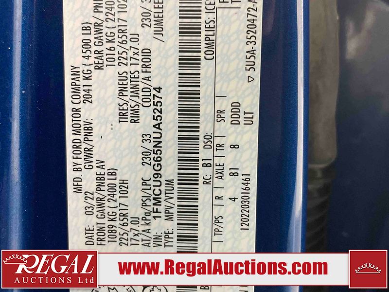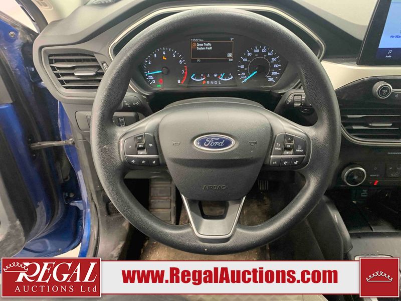 This 2022 FORD ESCAPE SE 4D UTILITY AWD is powered by a 1.5l 3 cylinder gasoline engine and an automatic transmission. It is equipped with four wheel drive. The SUV has seats for 5 people. The SUV has high mileage for its age. The vehicle has high value options including heated seats and a backup camera. The Cross system traffic fault and blind spot system fault lights are on. The body looks to be in rough condition overall. There are extensive scratches on the front bumper. There is very bad dent damage on the right front fender. There are chips on the front bumper, grille, hood, roof, left front fender, left front door, left rear door, left rear fender, rear bumper, rear door, right rear fender, right rear door, right front door, and right front fender. There are scratches on the hood, roof, left front fender, left front door, left rear door, left rear fender, rear bumper, rear door, right rear fender, right rear door, right front door, and right front fender. There is minimal dent damage on the roof, left rear fender, rear door, and right rear fender. There is minor paint peeling on the left front door. The interior looks to be in fair condition overall. The driver's seat, passenger seat, and rear seats are stained. The doors are worn. The carpet is dirty. The roofliner is dirty. The driver side mirror housing is broken. The drivers mirror has been removed. The mirror piece is in the vehicle. The windshield is cracked. The tires are all worn.