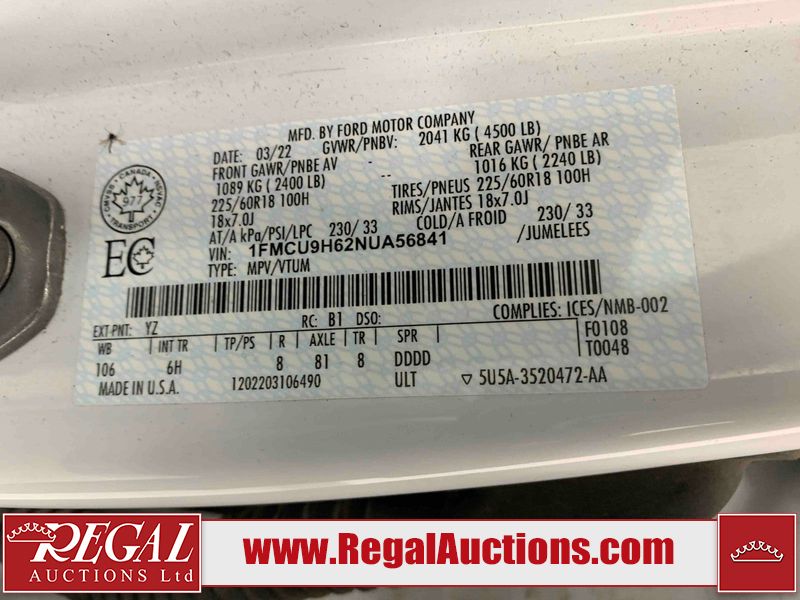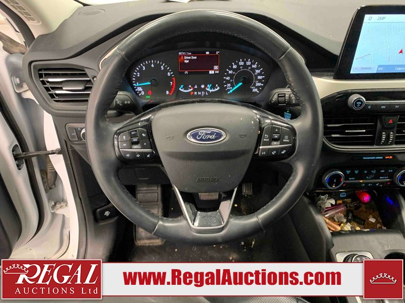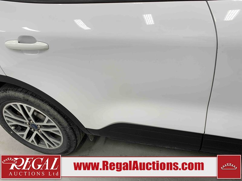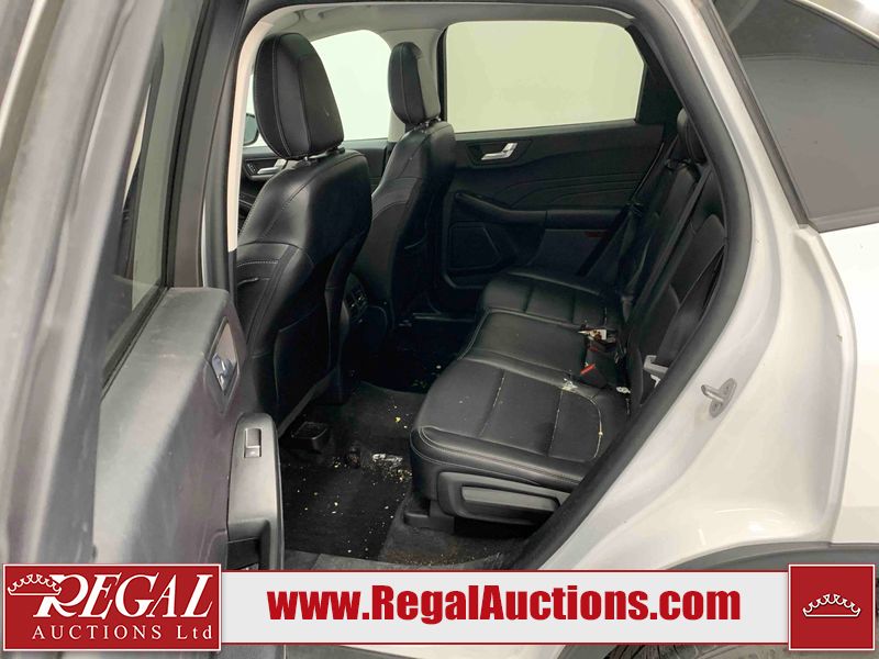 This 2022 FORD ESCAPE SEL 4D UTILITY AWD 1.5L is powered by a turbocharged 3 cylinder gasoline engine and an automatic transmission. It is equipped with four wheel drive. The SUV has seats for 5 people. The SUV has high mileage for its age. The vehicle has high value options including a sunroof, leather upholstery, power seats, heated seats, navigation, a backup camera, and a power lift gate. The body looks to be in rough condition overall. There is severe hail on the hood, roof, left front fender, left front door, left rear door, left rear fender, and rear door. There is conspicuous hail on the right rear door. There are minimal chips on the hood, left front fender, left front door, left rear door, left rear fender, rear bumper, right rear fender, right rear door, and right front door. There is slight paint peeling on the hood. There are scratches on the rear bumper. There are very minor chips in some areas around the body. There are very minor scratches in many areas around the body. The left tail light is cracked. The interior looks to be in fair condition overall. The driver's seat, passenger seat, and rear seats are stained. The dashboard, passenger seat, and rear seats are dirty. The carpet is dirty. The windshield is chipped. All of the tires are nearly bald and should be replaced.