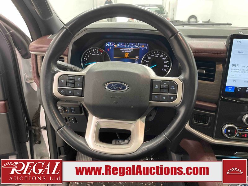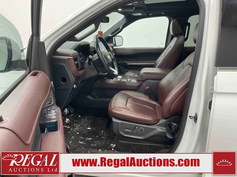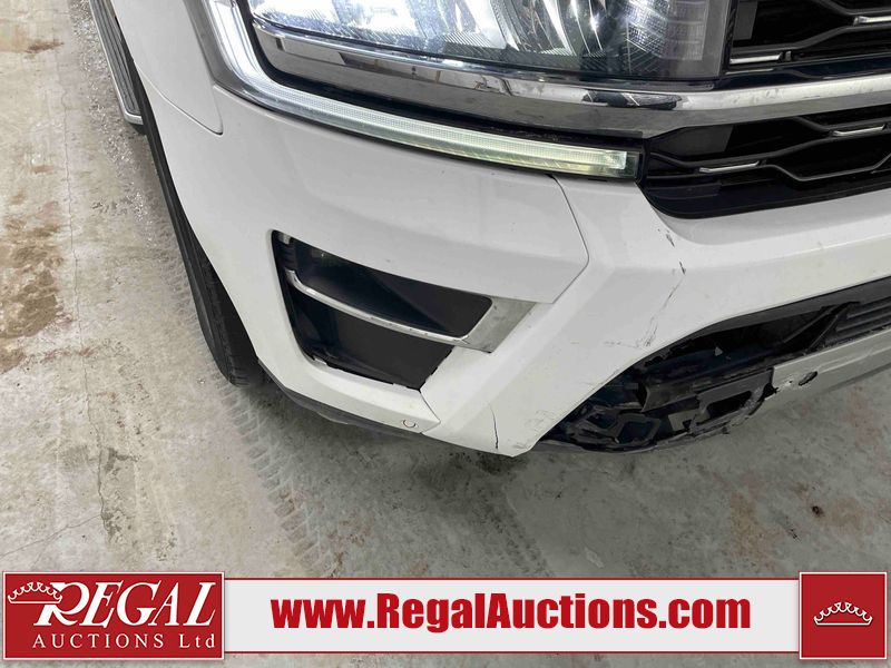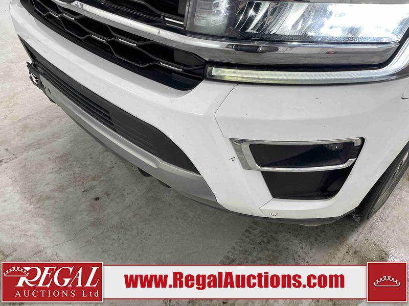 This 2022 FORD EXPEDITION MAX LIMITED 4D UTILITY 4WD 3.5L is powered by a turbocharged 6 cylinder gasoline engine and an automatic transmission. It is equipped with four wheel drive. The SUV has seats for 8 people. The SUV has high mileage for its age. LIMITED is a very popular trim level. The vehicle has high value options including a sunroof, leather upholstery, power seats, heated seats, navigation, a backup camera, and a power lift gate. The Precollision warning light is on. This unit has been in a front end collision and may have possible frame damage. The sunroof is inoperable. The body looks to be in fair condition overall. The front bumper is cracked. The fascia is broken on the front bumper. There are chips on the front bumper, grille, and hood. There are incidental scratches on the front bumper and rear door. There is minimal dent damage on the roof and rear door. There are very minor scratches in many areas around the body. There is very minor dent damage in many areas around the body. There are very minor chips in many areas around the body. The interior looks to be in fair condition overall. The driver's seat, passenger seat, and doors are worn. The rear seats are torn. The carpet is dirty. The windshield is chipped. The tires are all worn.