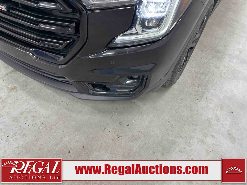 This 2022 GMC TERRAIN 4D UTILITY AWD 1.5L is powered by a turbocharged 4 cylinder gasoline engine and an automatic transmission. It is equipped with four wheel drive. The SUV has seats for 5 people. The SUV has low mileage for its age. The vehicle has high value options including power seats, heated seats, a backup camera, and a power lift gate. The sunroof shade is damaged and requires repair. The passenger side mirror is cracked. The body looks to be in fair condition overall. There are very bad scratches on the rear bumper. There is noteworthy hail on the hood and roof. There are scratches on the hood, left front fender, left front door, and right front door. There is dent damage on the right rear fender and right front door. There are very minor chips in many areas around the body. There are very minor scratches in many areas around the body. There is very minor dent damage in a few areas around the body. The interior looks to be in good condition overall. The windshield looks to be in good condition. All of the tires have lots of tread remaining.