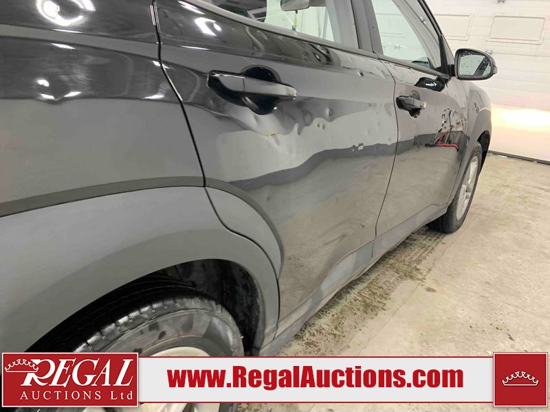 This 2022 HYUNDAI KONA ESSENTIAL 4D UTILITY AWD 2.0L is powered by a 4 cylinder gasoline engine and an automatic transmission. It is equipped with four wheel drive. The SUV has seats for 5 people. The mileage is average considering the SUV's age. The vehicle has high value options including heated seats and a backup camera. The body looks to be in rough condition overall. There is fascia misaligned damage to the front bumper. There is very bad hail on the hood, roof, left front door, left rear door, left rear fender, rear door, right rear fender, right rear door, right front door, and right front fender. The fascia is cracked on the front bumper. There are chips on the front bumper, hood, left front fender, left front door, left rear door, left rear fender, and right front door. There are very minor scratches in many areas around the body. There are very minor chips in many areas around the body. The interior looks to be in fair condition overall. The driver's seat is stained. The carpet is dirty. The windshield is cracked. All of the tires have lots of tread remaining.
