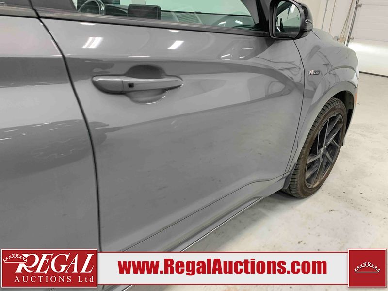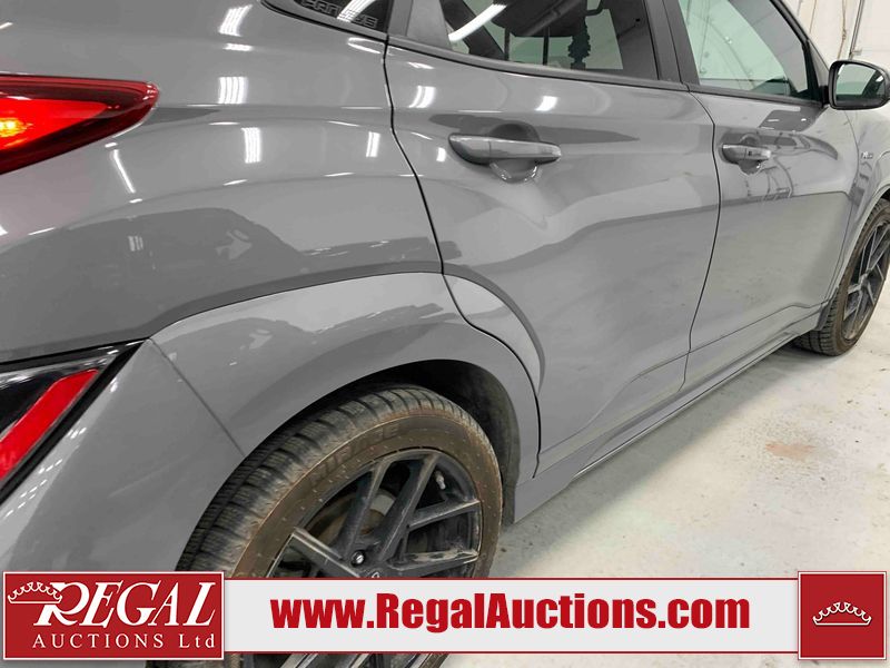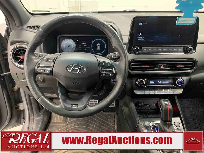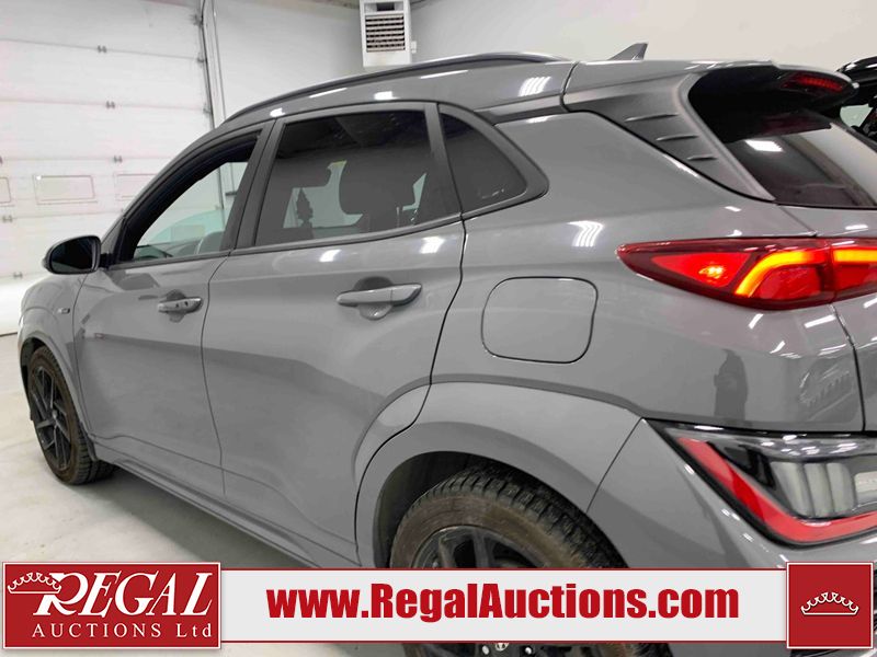 This 2022 HYUNDAI KONA N LINE W/ULTIMATE 4D UTILITY AWD 1.6L is powered by a turbocharged 4 cylinder gasoline engine and an automatic transmission. It is equipped with four wheel drive. The SUV has seats for 5 people. The SUV has high mileage for its age. The vehicle has high value options including a sunroof, leather upholstery, power seats, heated seats, navigation, a backup camera, and a power lift gate. The body looks to be in good condition overall. There are very minor chips in many areas around the body. There are very minor scratches in many areas around the body. The interior looks to be in good condition overall. The windshield looks to be in good condition. All of the tires have lots of tread remaining.