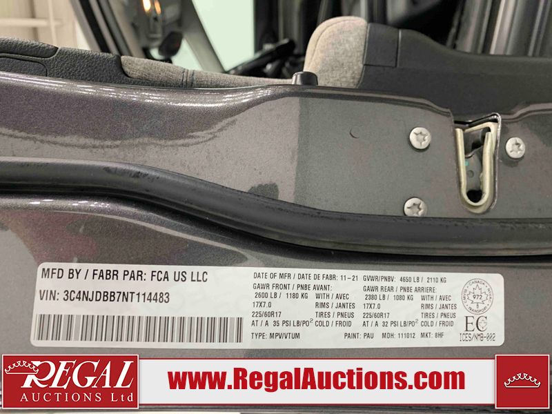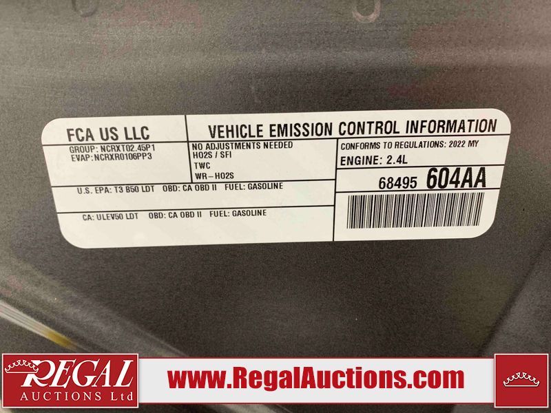 This 2022 JEEP COMPASS NORTH 4D SPORT UTILITY 4WD is powered by a 2.4L 4-cylinder gasoline engine and an automatic transmission. It is equipped with four-wheel drive. The SUV has seats for 5 people. The SUV has high mileage for its age. The vehicle has high-value options including leather upholstery, power seats, heated seats, navigation, and a backup camera. The body looks to be in good condition overall. There are minor scratches on the front bumper. There are very minor chips in many areas around the body. There are very minor scratches in many areas around the body. The interior looks to be in good condition overall. The driver's seat is worn. The windshield is cracked. All of the tires have lots of tread remaining. This SUV is being sold by an automotive broker. The vehicle will be sold with the following declarations: Out of Province - SK (See Footnote 1). Footnotes: 1) The vehicle's last registered jurisdiction is Saskatchewan. The purchaser must have the vehicle undergo and pass an Out of Province inspection before it can be registered in Alberta. Regal Auctions Ltd. makes no guarantee or warranty, either express or implied, with respect to the data provided in this report. The information has been provided from the consignor and from sources generally believed to be reliable, however the accuracy of this information cannot be guaranteed by Regal Auctions.