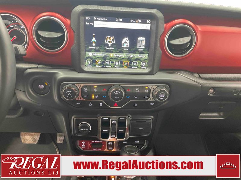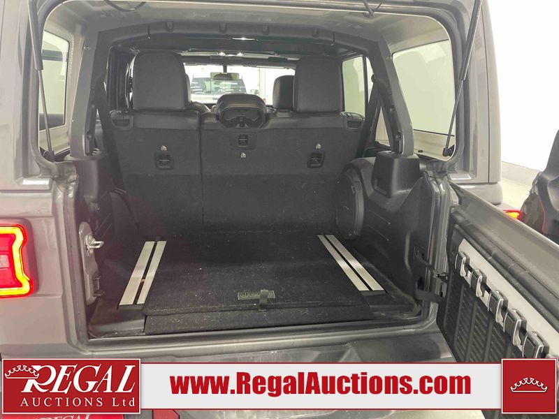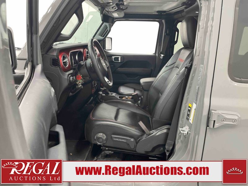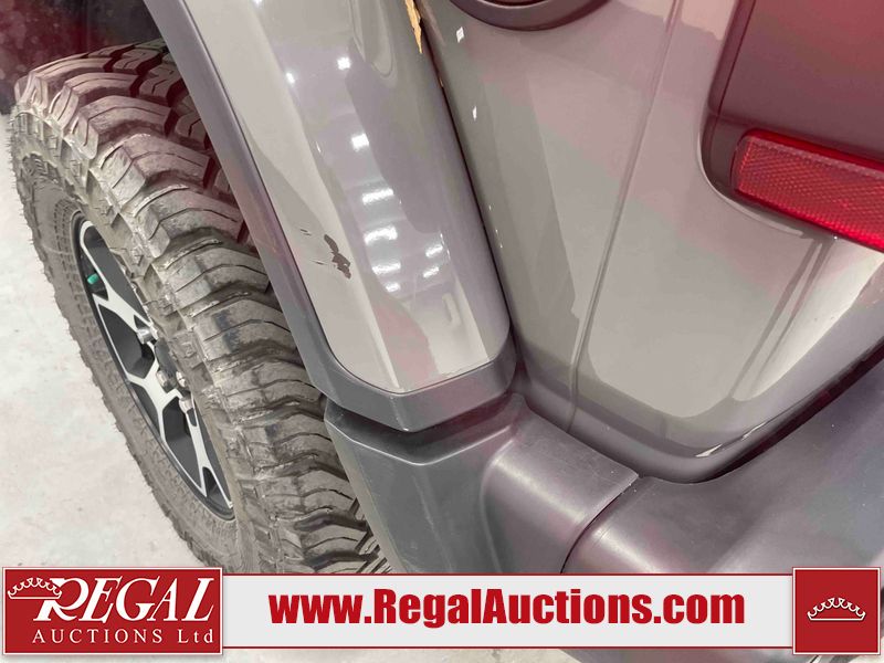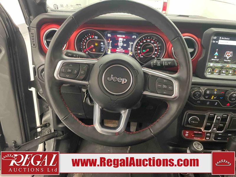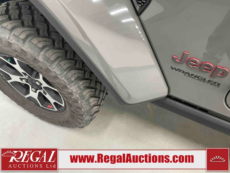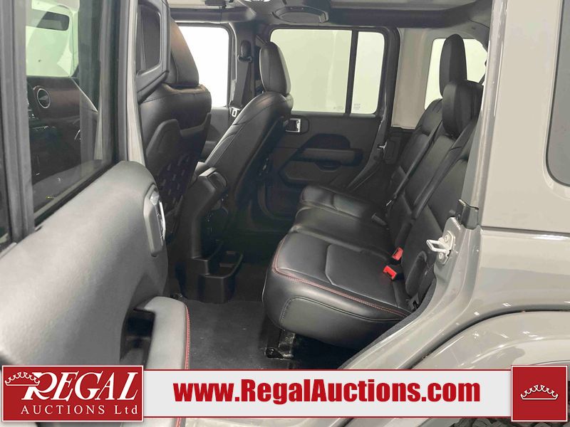 This 2022 JEEP WRANGLER UNLIMITED RUBICON 4D UTILITY 4WD 3.6L is powered by a 6 cylinder hybrid gasoline engine and an automatic transmission. It is equipped with four wheel drive. The SUV has seats for 5 people. The SUV has low mileage for its age. The vehicle has high value options including leather upholstery, heated seats, navigation, a convertible top, and a backup camera. The body looks to be in good condition overall. There are incidental chips on the grille, hood, left front fender, and rear door. There is minimal paint peeling on the left rear fender. There are very minor chips in many areas around the body. There are very minor scratches in many areas around the body. The interior looks to be in good condition overall. The carpet is dirty. The windshield is cracked. All of the tires have lots of tread remaining.