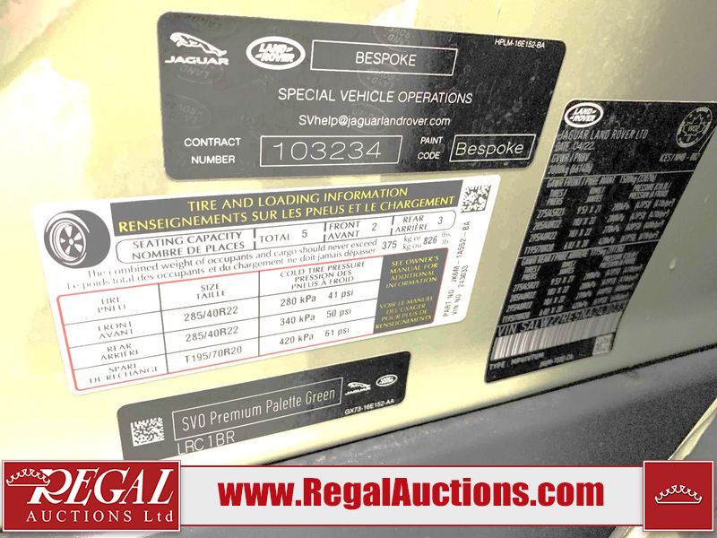 This 2022 LAND ROVER RANGE ROVER SPORT SVR 4D UTILITY AWD 5.0L is powered by a 8 cylinder gasoline engine and an automatic transmission. It is equipped with four wheel drive. The SUV has seats for 5 people. The SUV has low mileage for its age. The vehicle has high value options including a sunroof, leather upholstery, power seats, heated seats, navigation, a backup camera, and a power lift gate. The body looks to be in very good condition overall. The front end of this unit has been wrapped in a protective paint coating. There are very minor chips in a few areas around the body. The interior looks to be in good condition overall. The windshield is cracked. All of the tires have lots of tread remaining.
