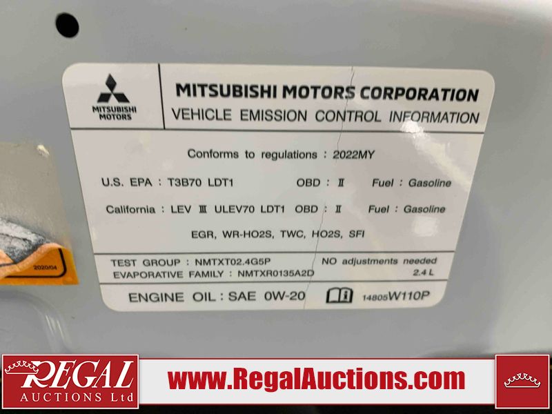 This 2022 MITSUBISHI RVR GT 4D UTILITY AWD 2.4L is powered by a 4 cylinder gasoline engine and an automatic transmission. It is equipped with four wheel drive. The SUV has seats for 5 people. The SUV has low mileage for its age. The vehicle has high value options including a sunroof, leather upholstery, power seats, heated seats, and a backup camera. The body looks to be in good condition overall. There are incidental chips on the front bumper, hood, and rear bumper. There are incidental scratches on the rear bumper. There are very minor scratches in many areas around the body. There are very minor chips in many areas around the body. The interior looks to be in good condition overall. The carpet is dirty. The windshield looks to be in good condition. All of the tires have lots of tread remaining. This unit comes with four spare tires.