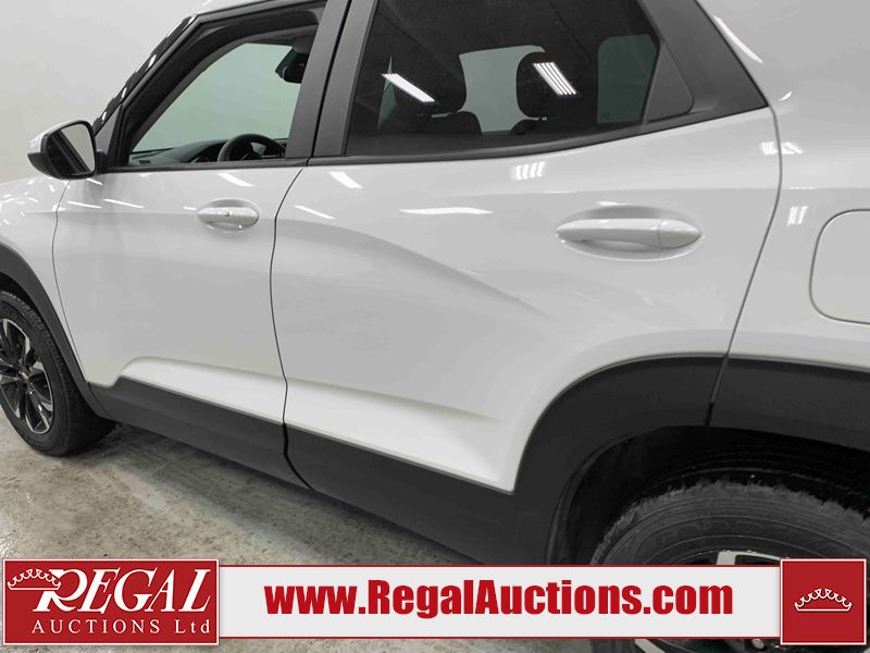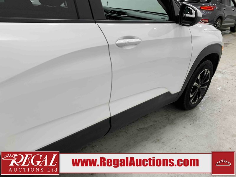 This 2023 CHEVROLET TRAILBLAZER LT 4D UTILITY AWD 1.3L is powered by a turbocharged 3 cylinder gasoline engine and an automatic transmission. It is equipped with four wheel drive. The SUV has seats for 5 people. The SUV has high mileage for its age. The vehicle has high value options including power seats, heated seats, and a backup camera. The body looks to be in good condition overall. There are incidental chips on the front bumper, grille, and hood. There are very minor scratches in many areas around the body. There are very minor chips in many areas around the body. The interior looks to be in good condition overall. The carpet is dirty. The windshield looks to be in good condition. The tires are all worn.