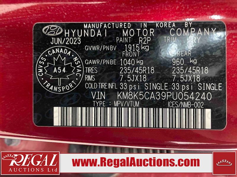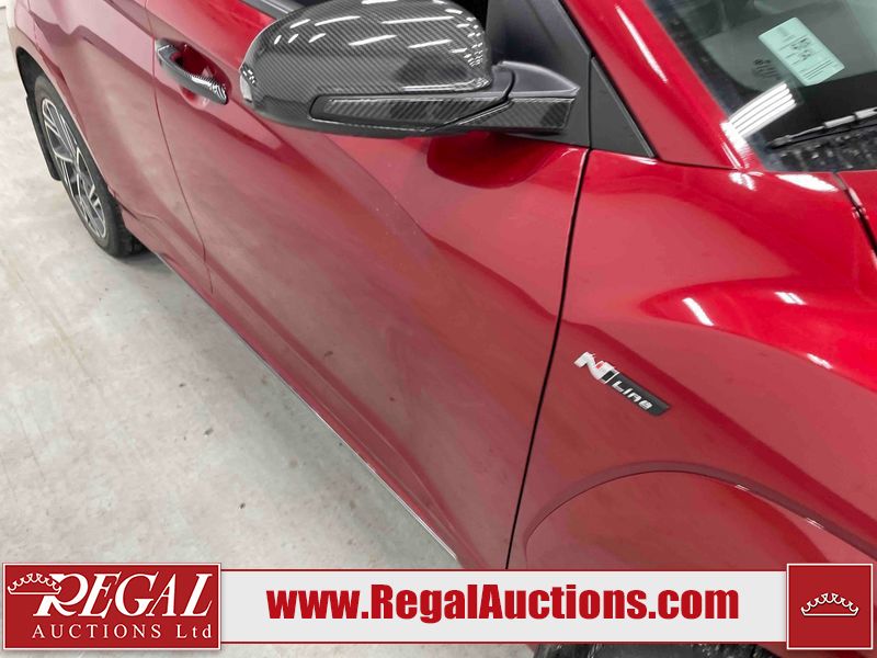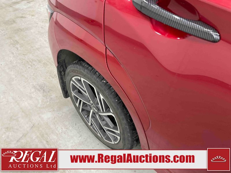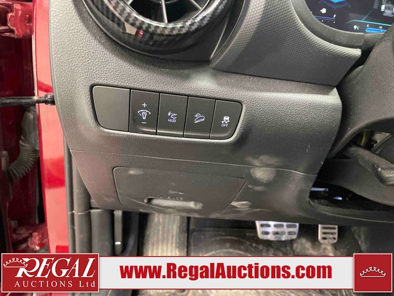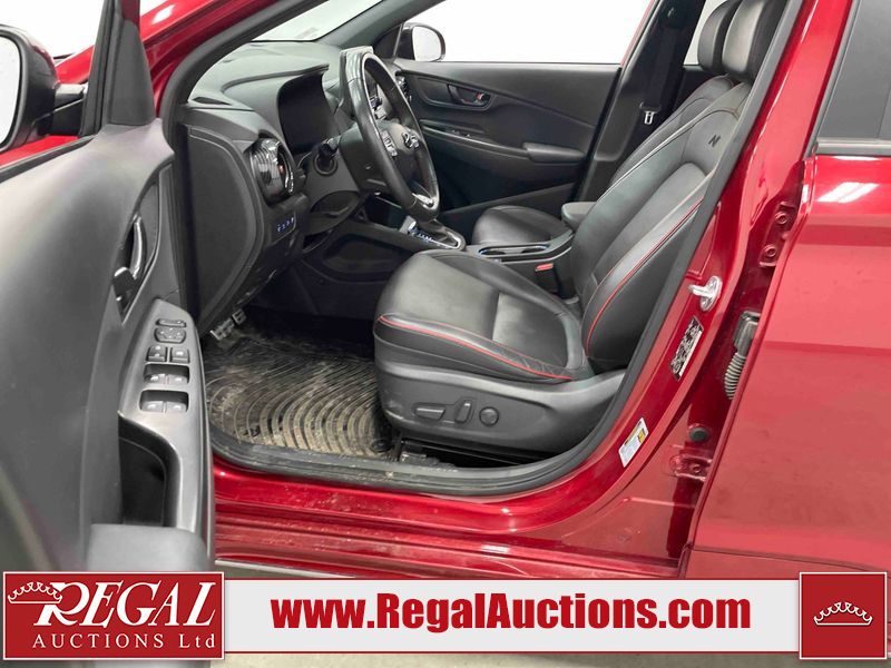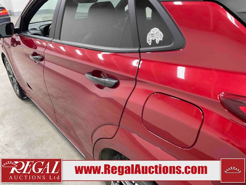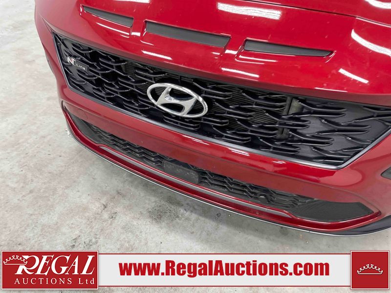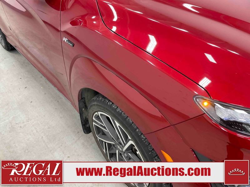 This 2023 HYUNDAI KONA N LINE 4D UTILITY AWD 1.6L is powered by a turbocharged 4 cylinder gasoline engine and an automatic transmission. It is equipped with four wheel drive. The SUV has seats for 5 people. The SUV has low mileage for its age. The vehicle has high value options including a sunroof, leather upholstery, power seats, heated seats, and a backup camera. The body looks to be in fair condition overall. There are slight chips on the front bumper, grille, and hood. There are incidental scratches on the front bumper, hood, and rear bumper. There is dent damage on the right rear fender. There are very minor chips in many areas around the body. There are very minor scratches in many areas around the body. The interior looks to be in fair condition overall. The rear seats are worn. The carpet is dirty. The windshield is chipped. All of the tires have lots of tread remaining.